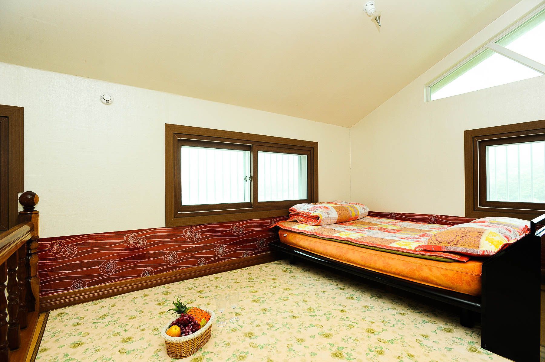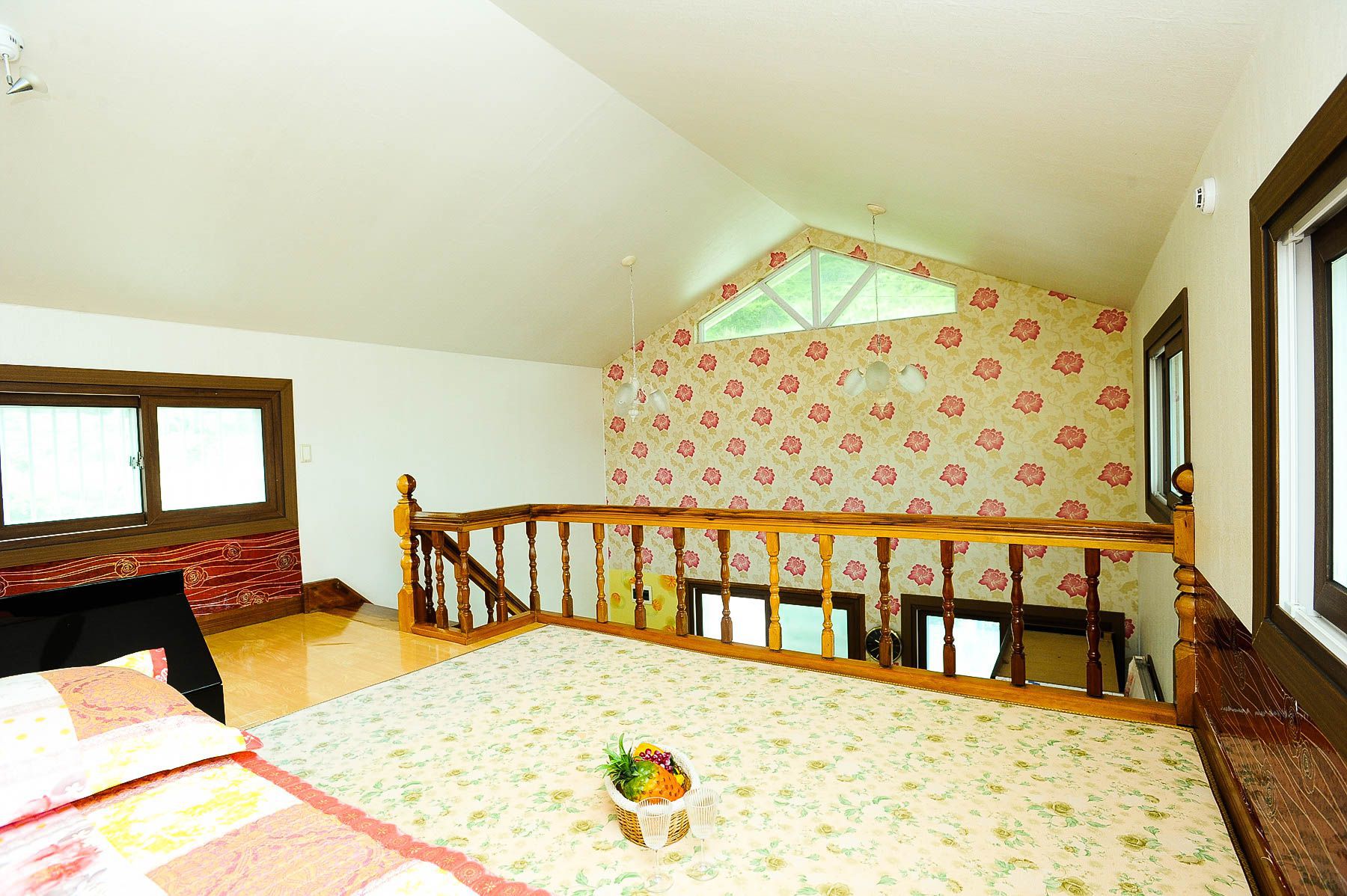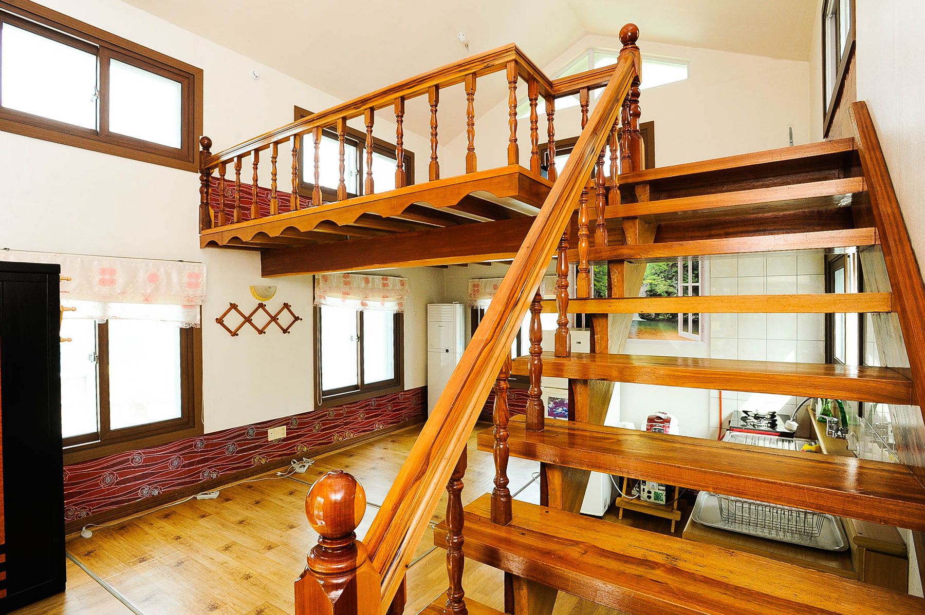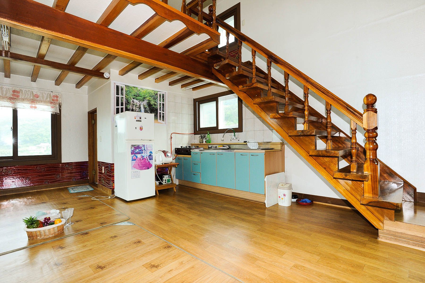 1층은 일반가옥처럼 편안한 휴식을 가질수 있고 넓은 거실과 객실2개,화장실,주방으로 구성되어 있습니다.