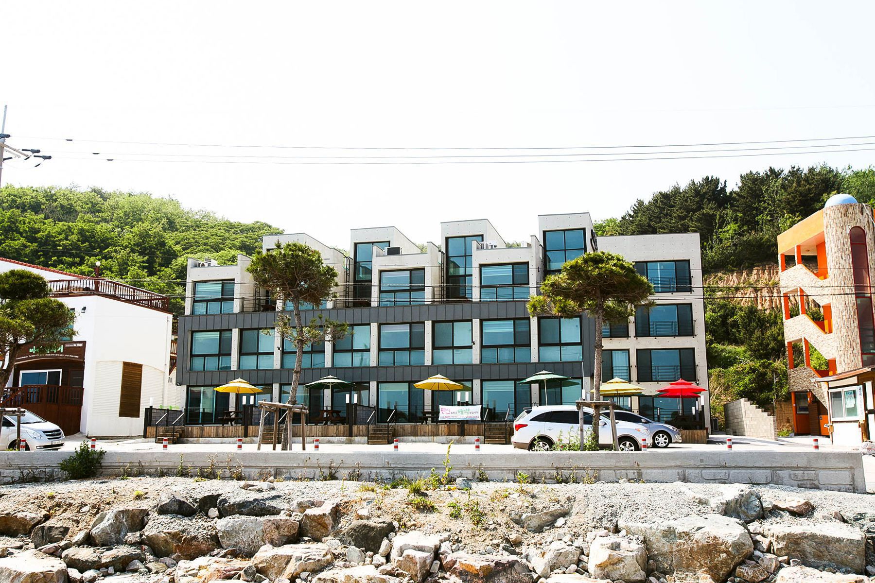 모던한 콘크리트구조의 세련되 외부구조와 내부는 복층과 원룸구조로 되어 있으며 객실이 넓어
