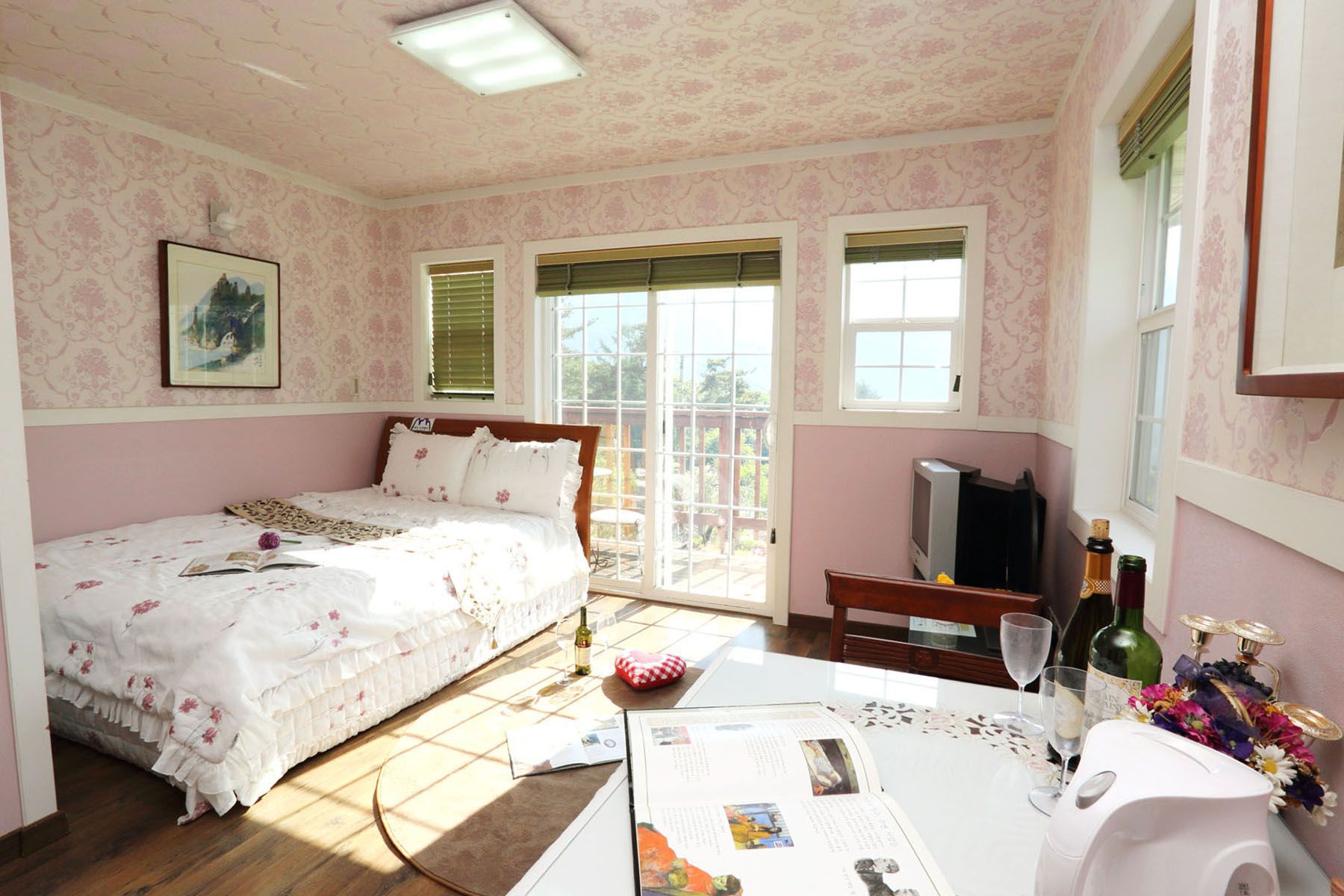 2인 최대 4명이 지낼 수 있는 객실이며 예술을 느낄 수 있는 펜션답게 객실마다 아름다운 예술작품이 걸려져있습니다.