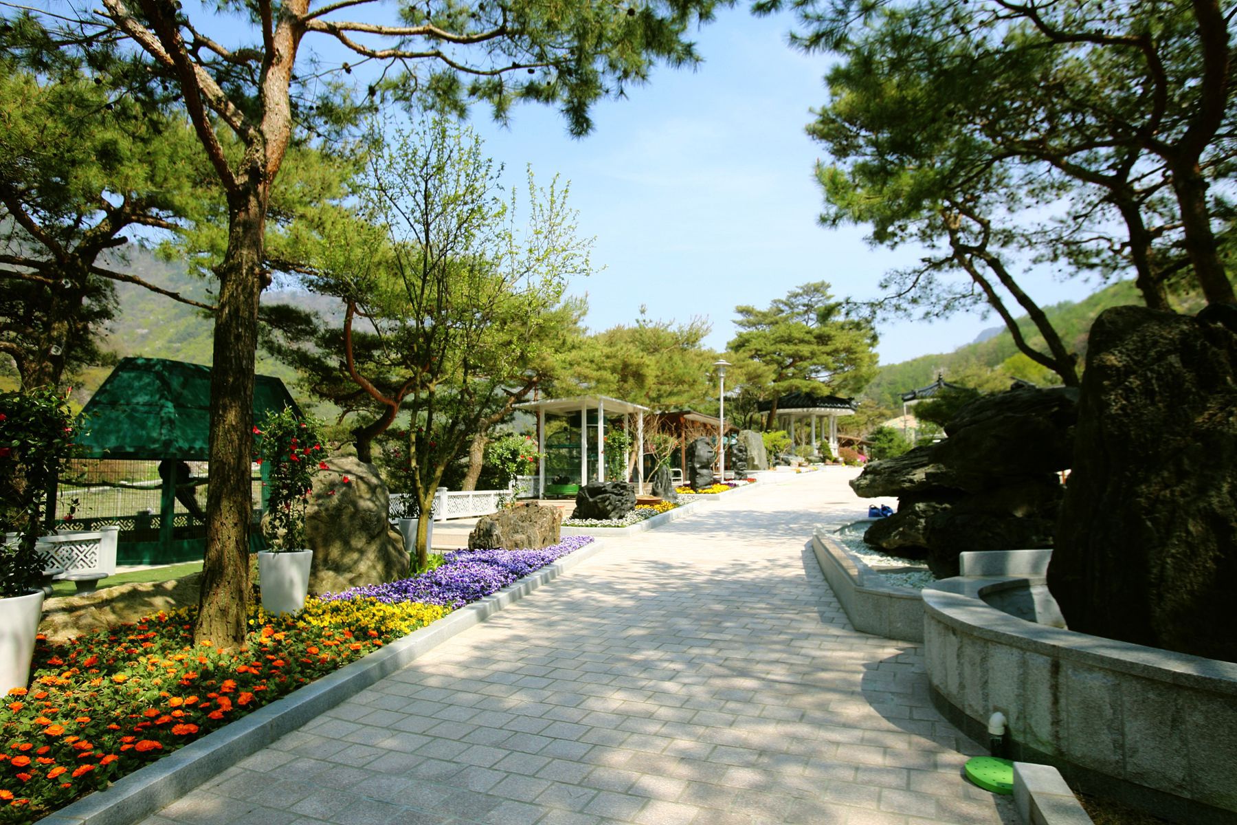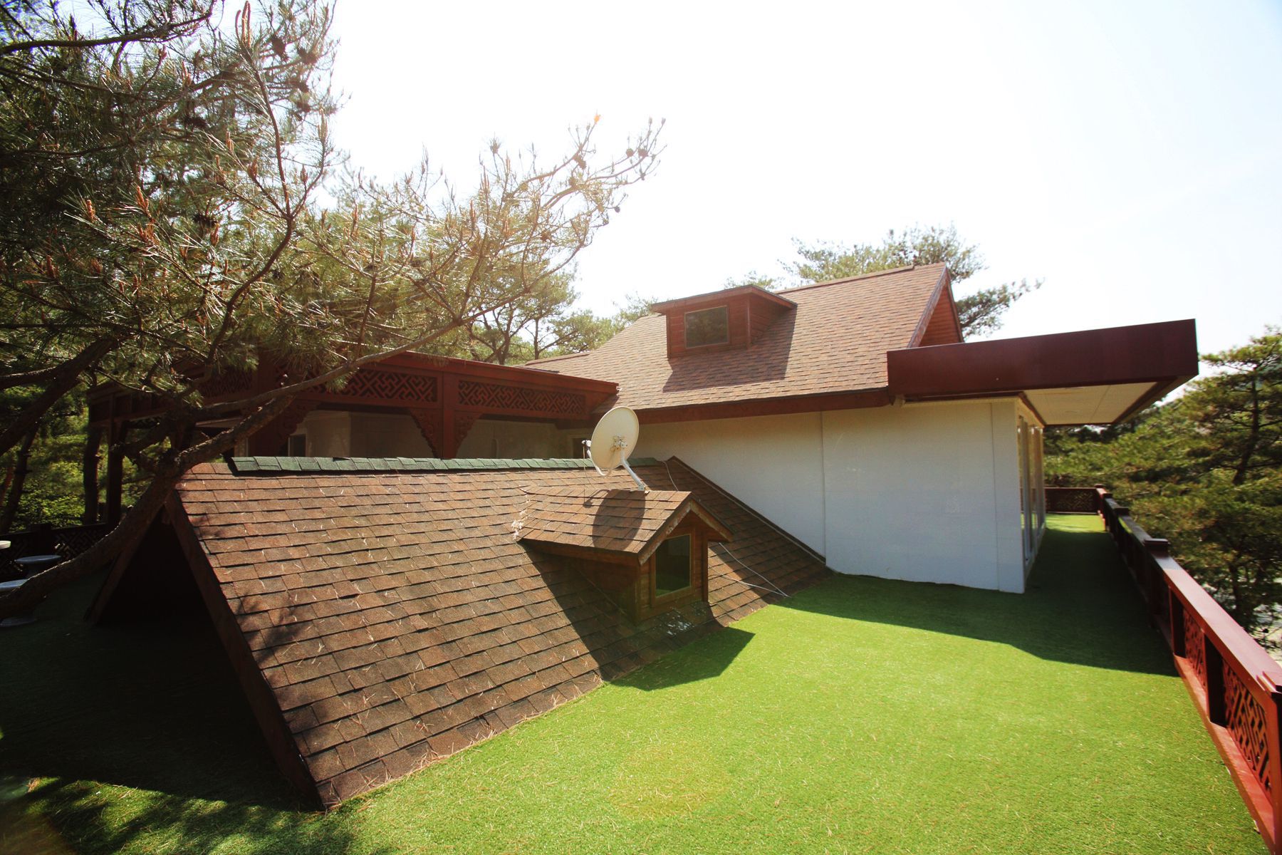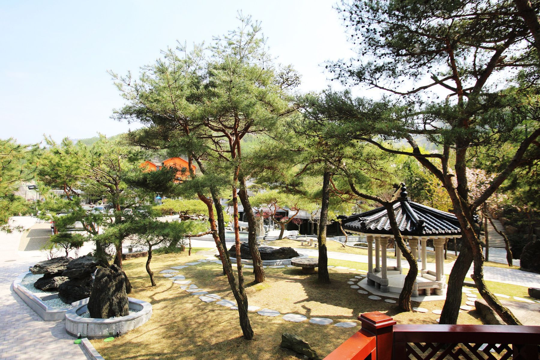 펜션 정원은 5천평 넓은 잔디정원에 소나무가 있어 운치가 있으며, 자연을 그대로 옮겨 놓은 듯 아름답습니다.