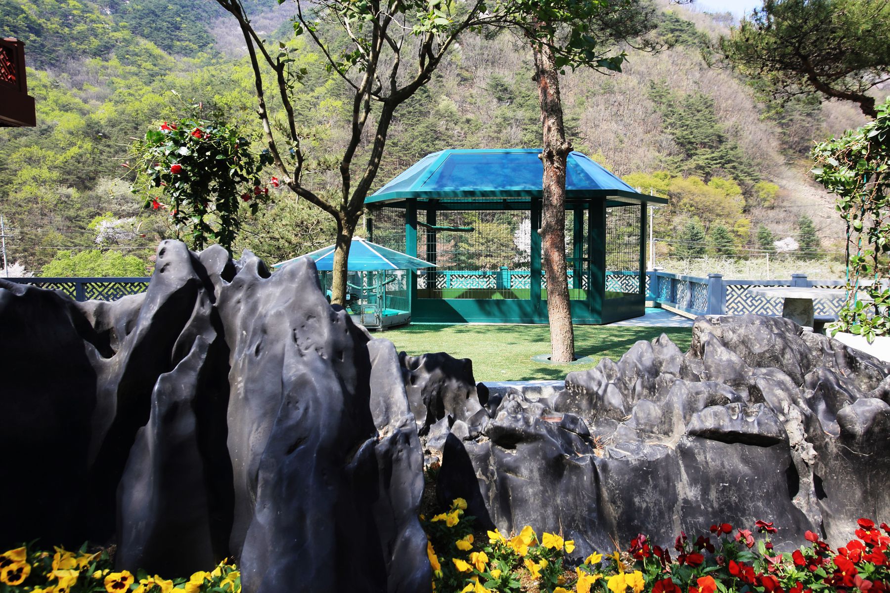 바위폭포와 꽃과 나무, 아름다운 관조새들로 조성된 5천평의 넓은 공원이 있는 펜션입니다.