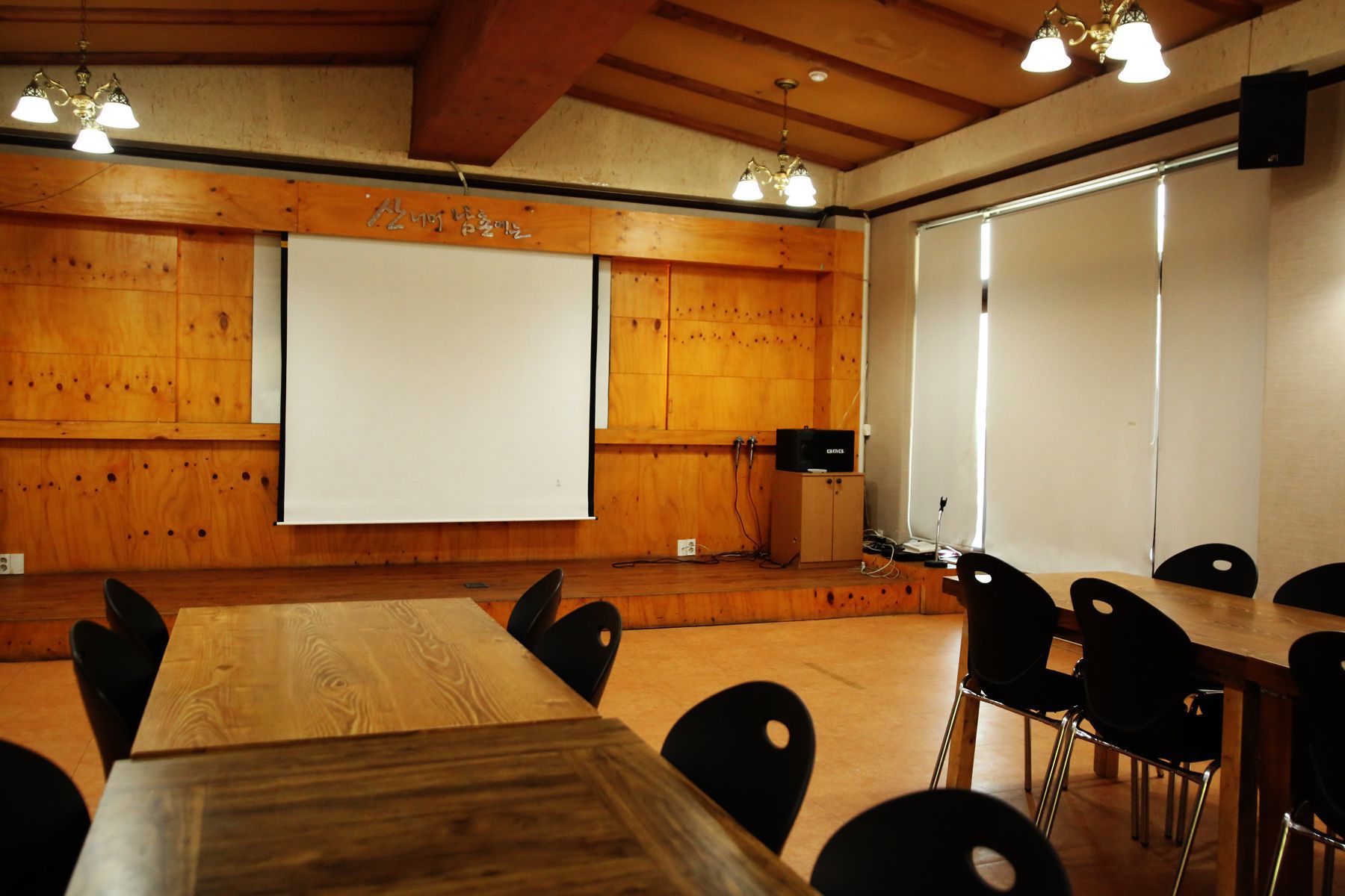 회의를 위함 빔프로젝트시설도 완비, 온돌 세미나실도 있습니다.