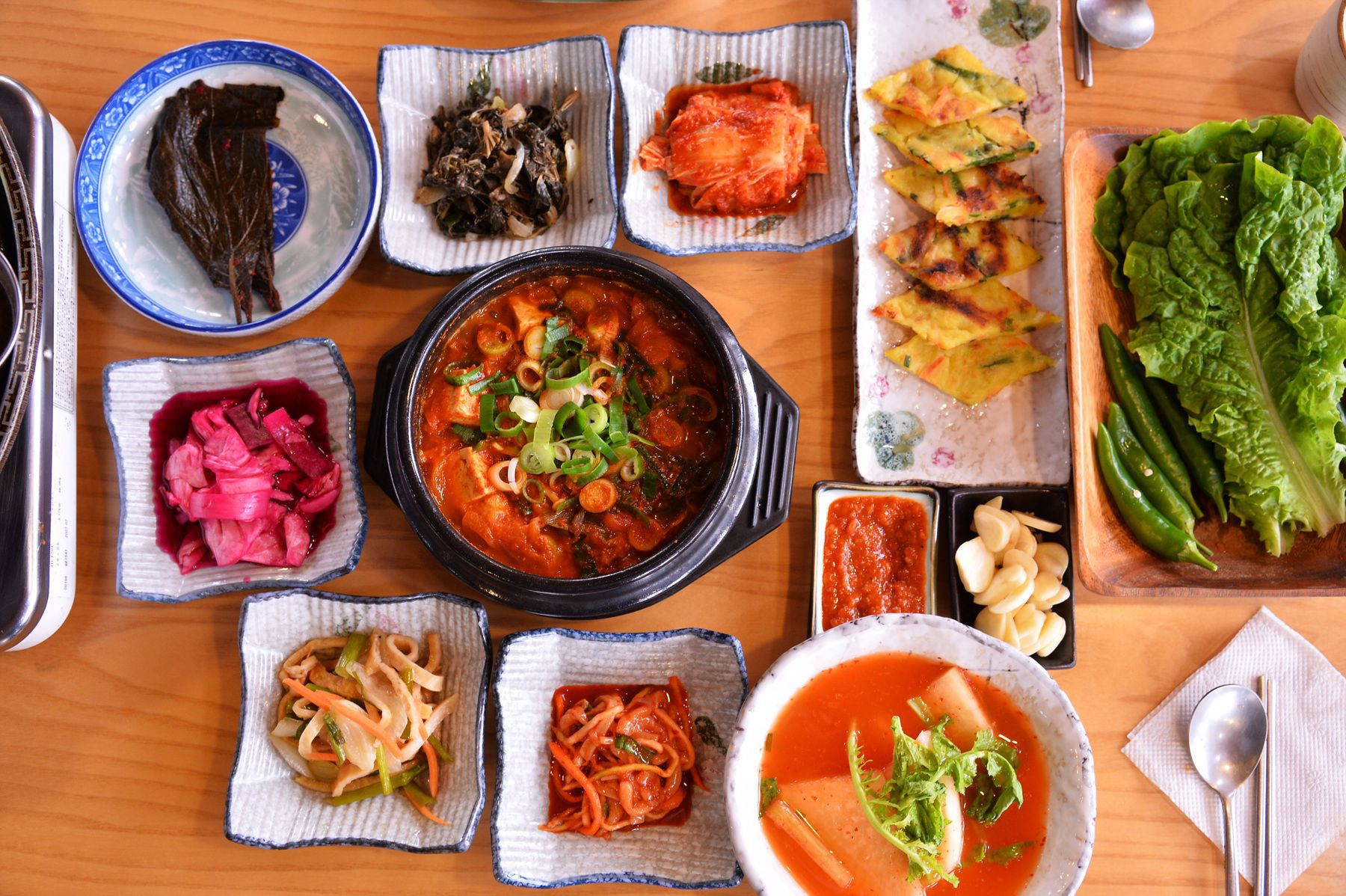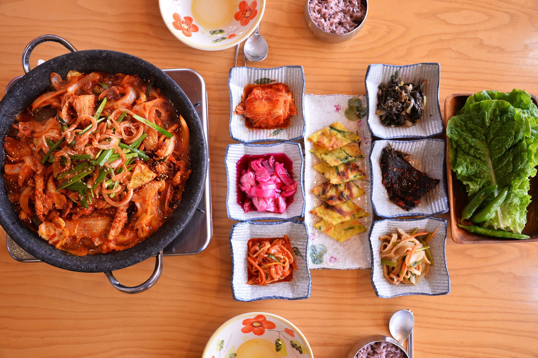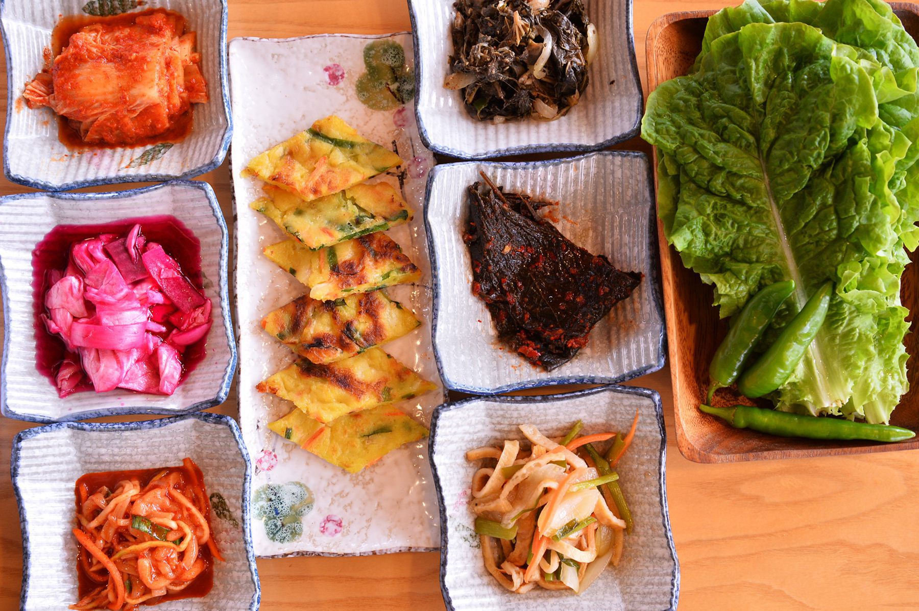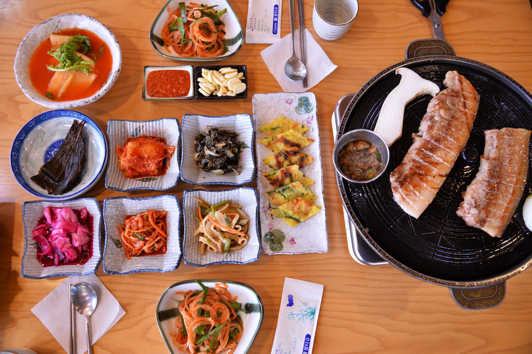 고기와 함께 드시면 좋을 밑반찬이 정성스럽게 차려집니다.