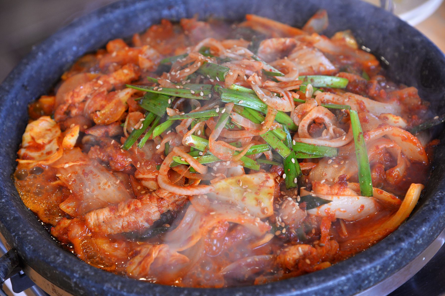 싱싱한 제주의 해산물이 듬뿍 들어간 뚝배기는 명가흑돈마을의 인기메뉴 중 하나랍니다.