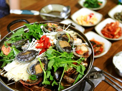 큼직한 전복과 각종 해물이 들어간 뚝배기라서 제주 바다의 향을 그대로 느낄 수 있습니다.