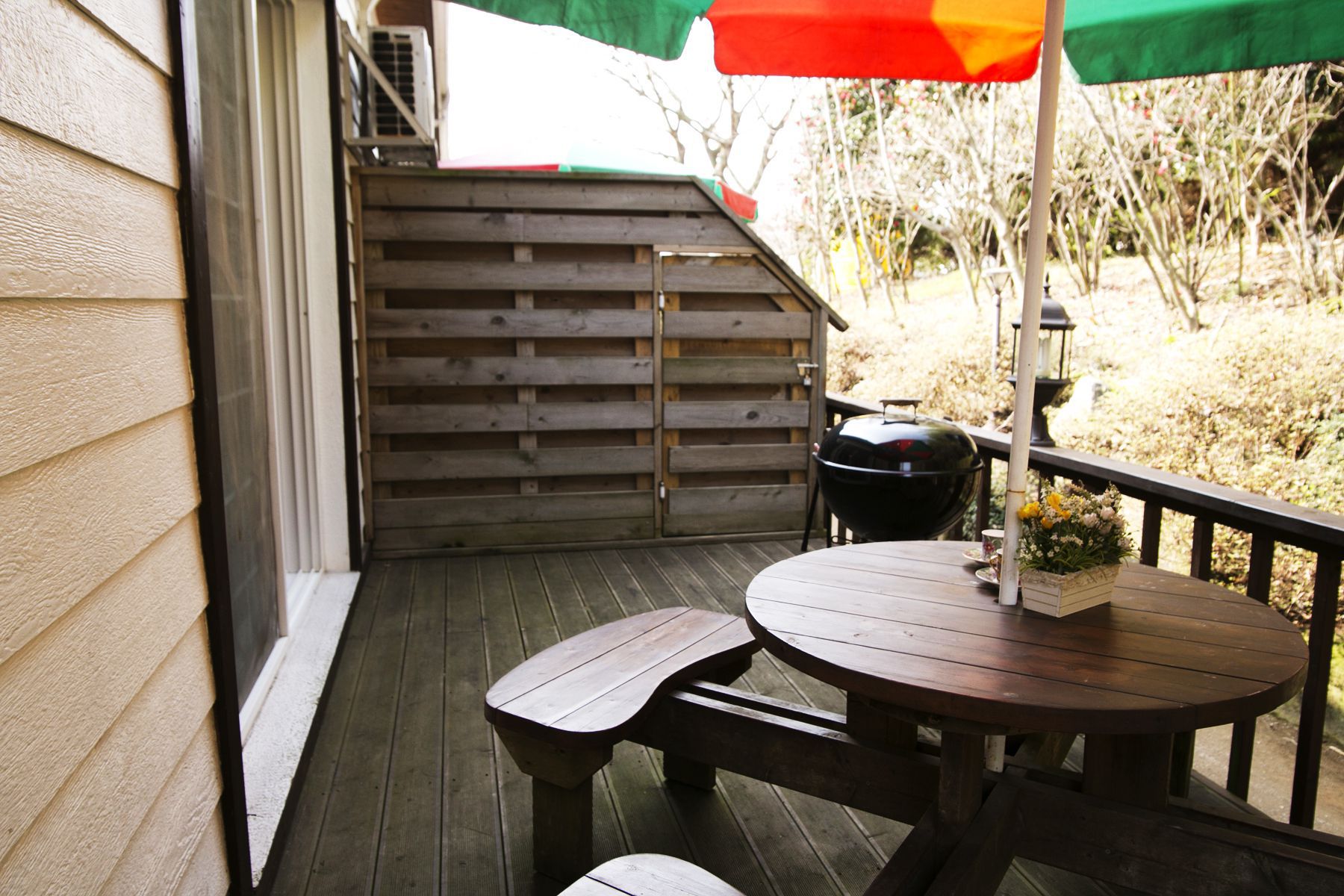원룸형태의 침대방이며 테라스에 개별 바비큐시설이 준비되어있어 둘만의 오붓한 바비큐파티를 즐길 수 있습니다^^
