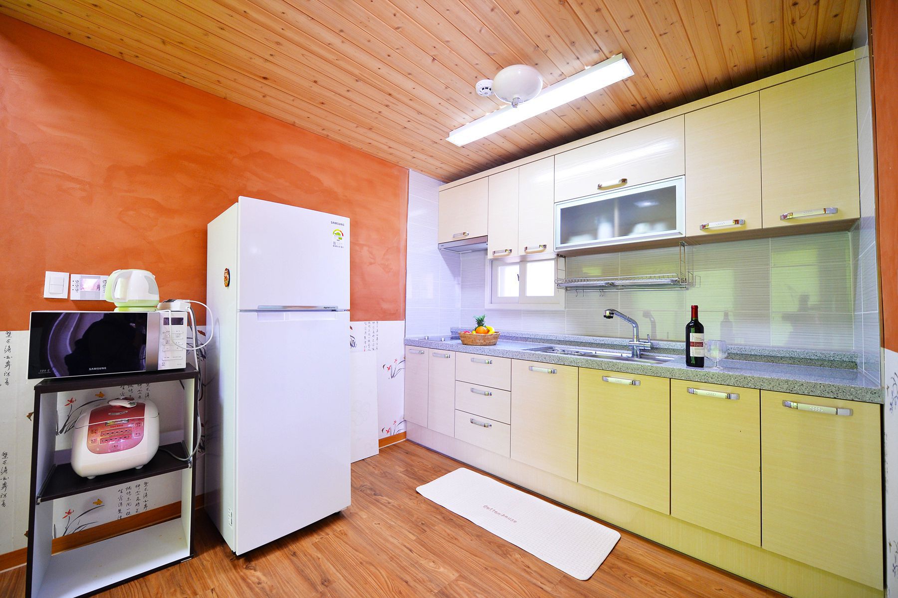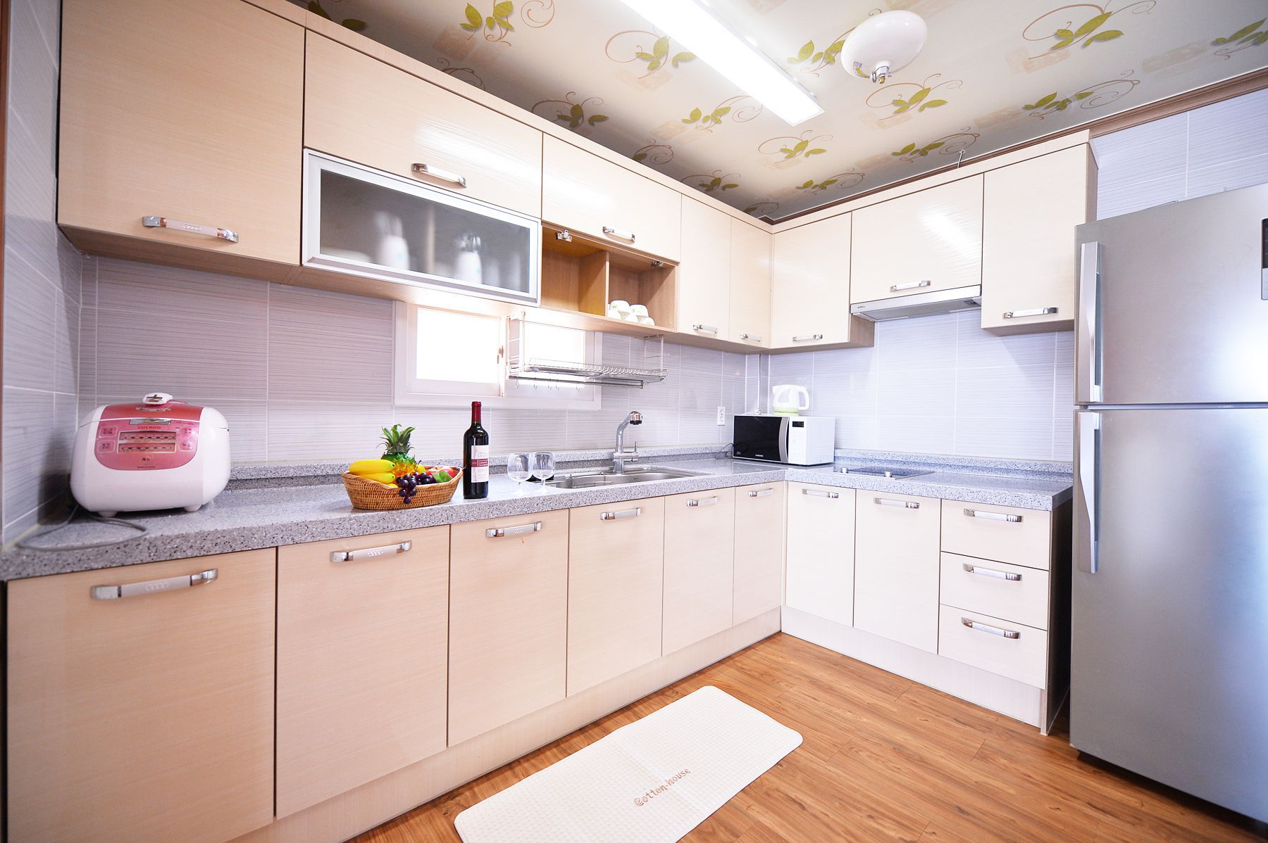 주방에는 전기밥솥,전자렌지,식기및조리기구일체,미니테이블,세재등이 준비되어있으며