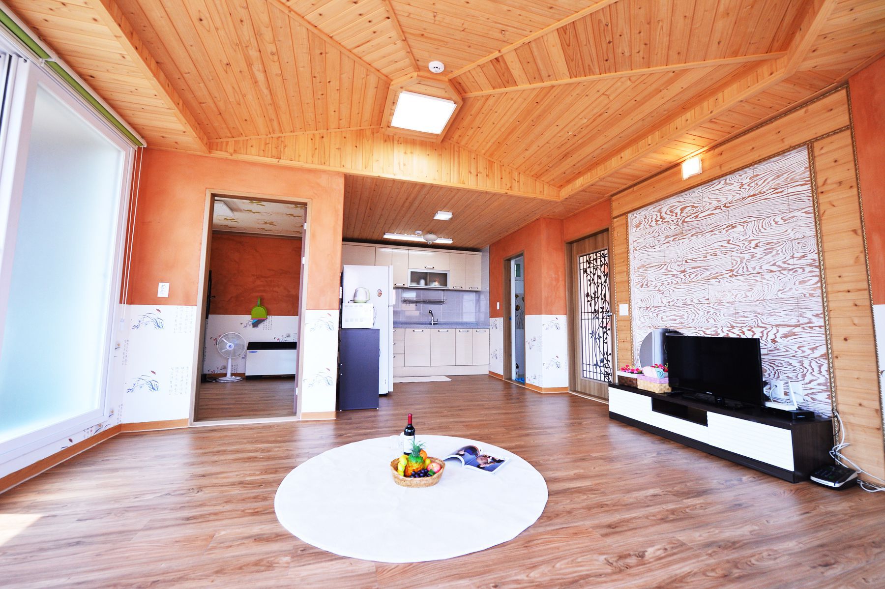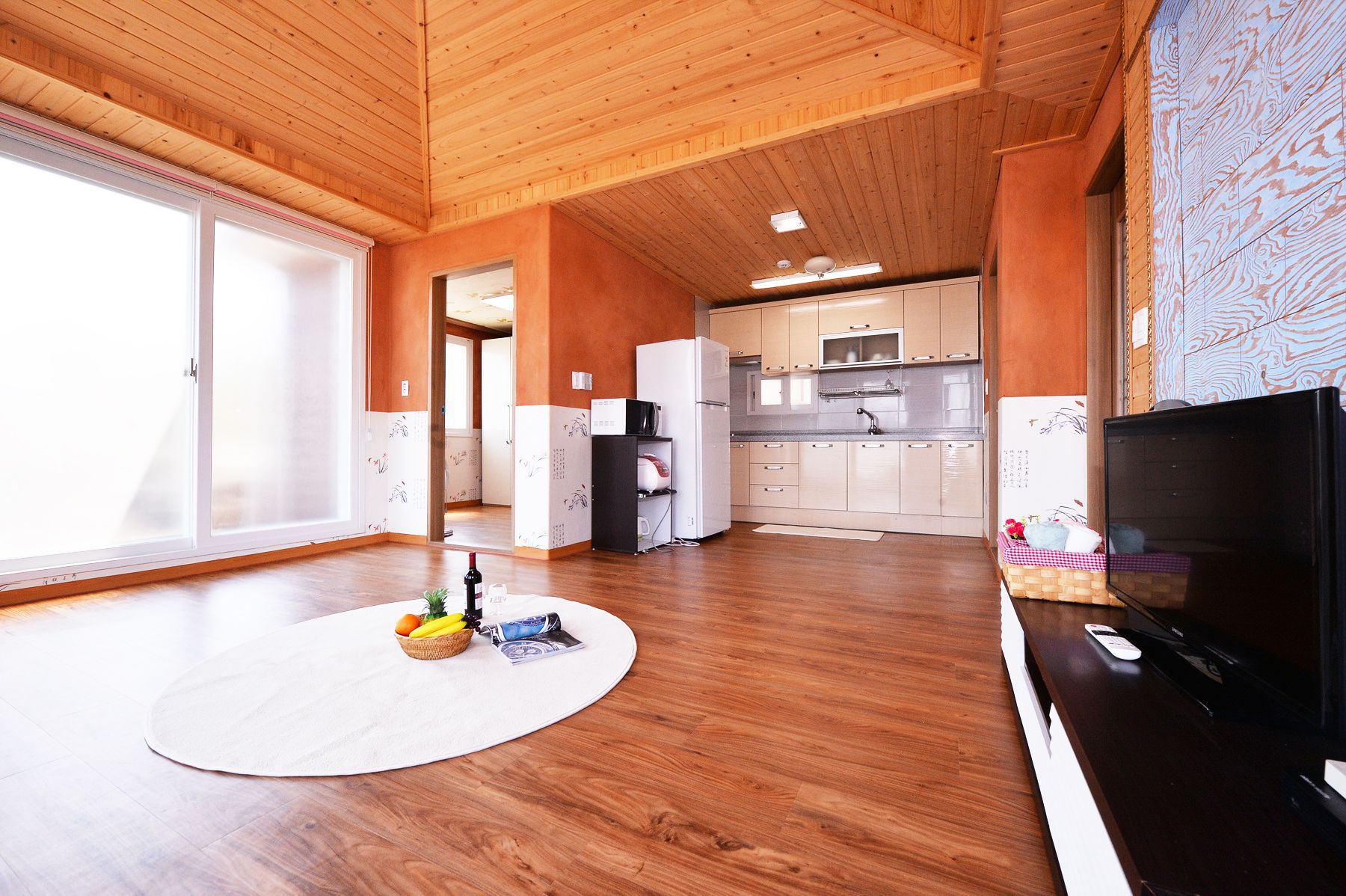 거실,부엌,방3,화장실2개로 단체손님을 위한 넓은 공간으로 꾸며진 '목련'객실입니다.