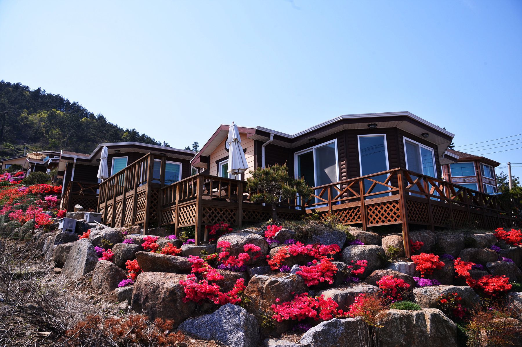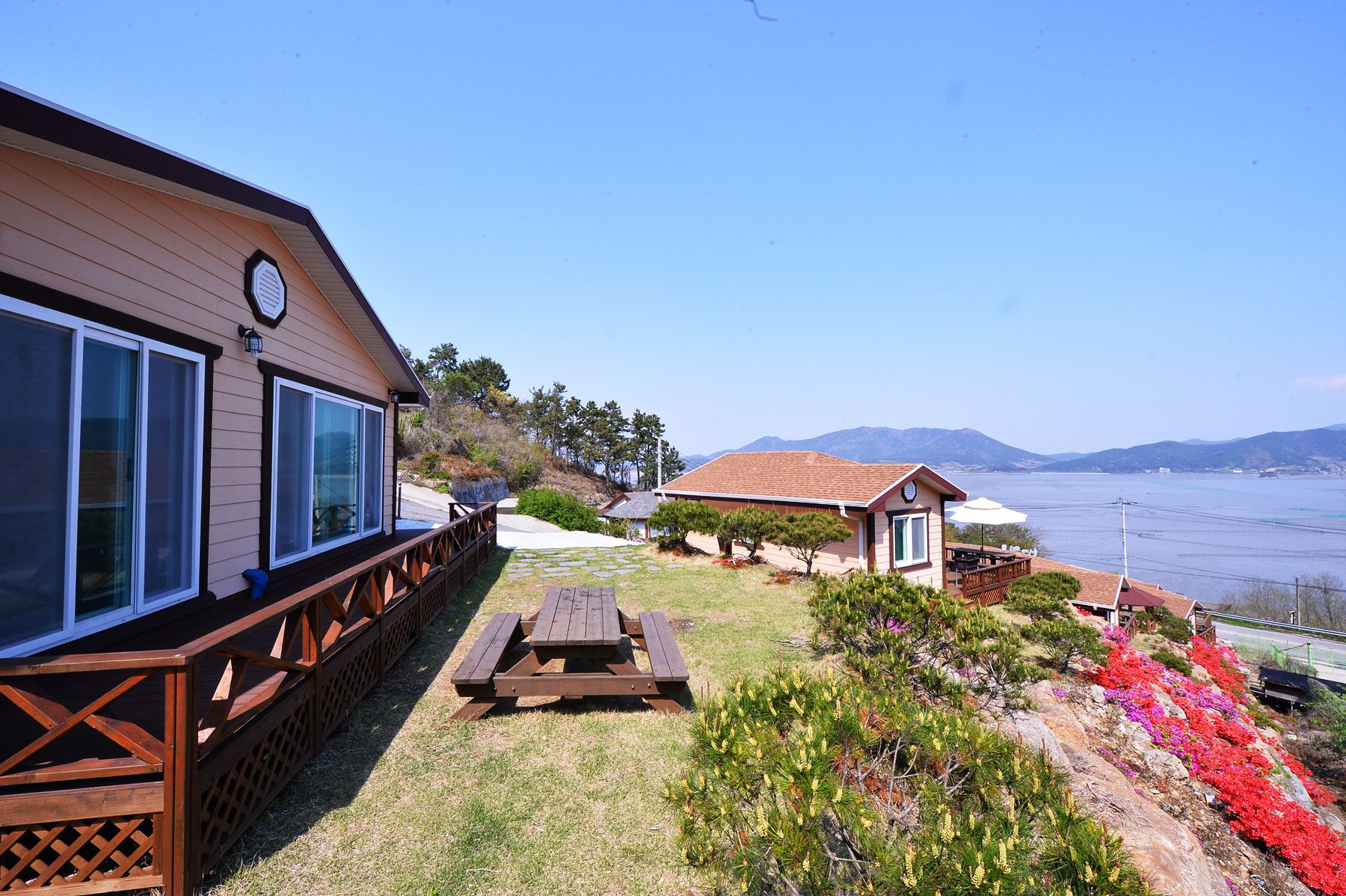 넓은 객실과 독채형식으로 되어있어 독립적인공간에서 휴식을 즐길 수있으며 전 객실 바다전경이라 전망이 끝내줍니다.