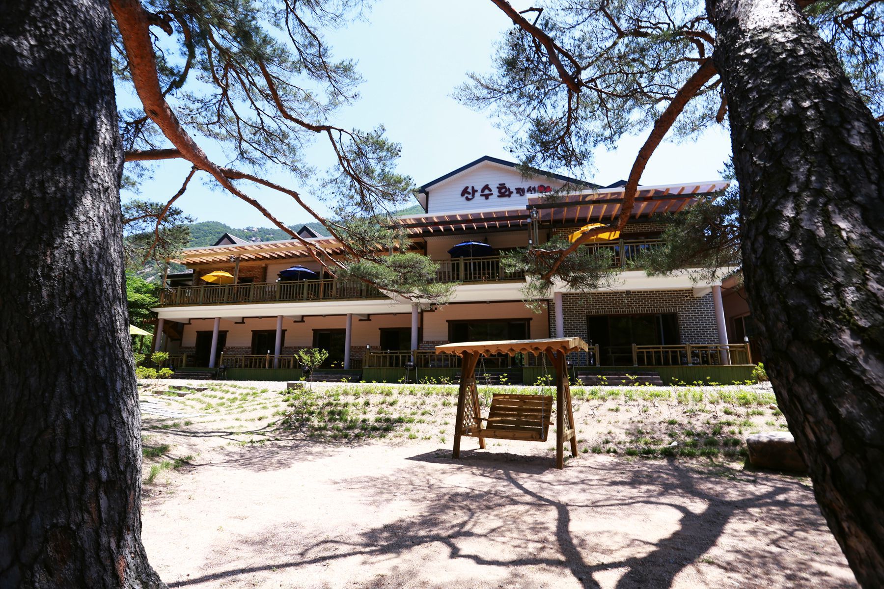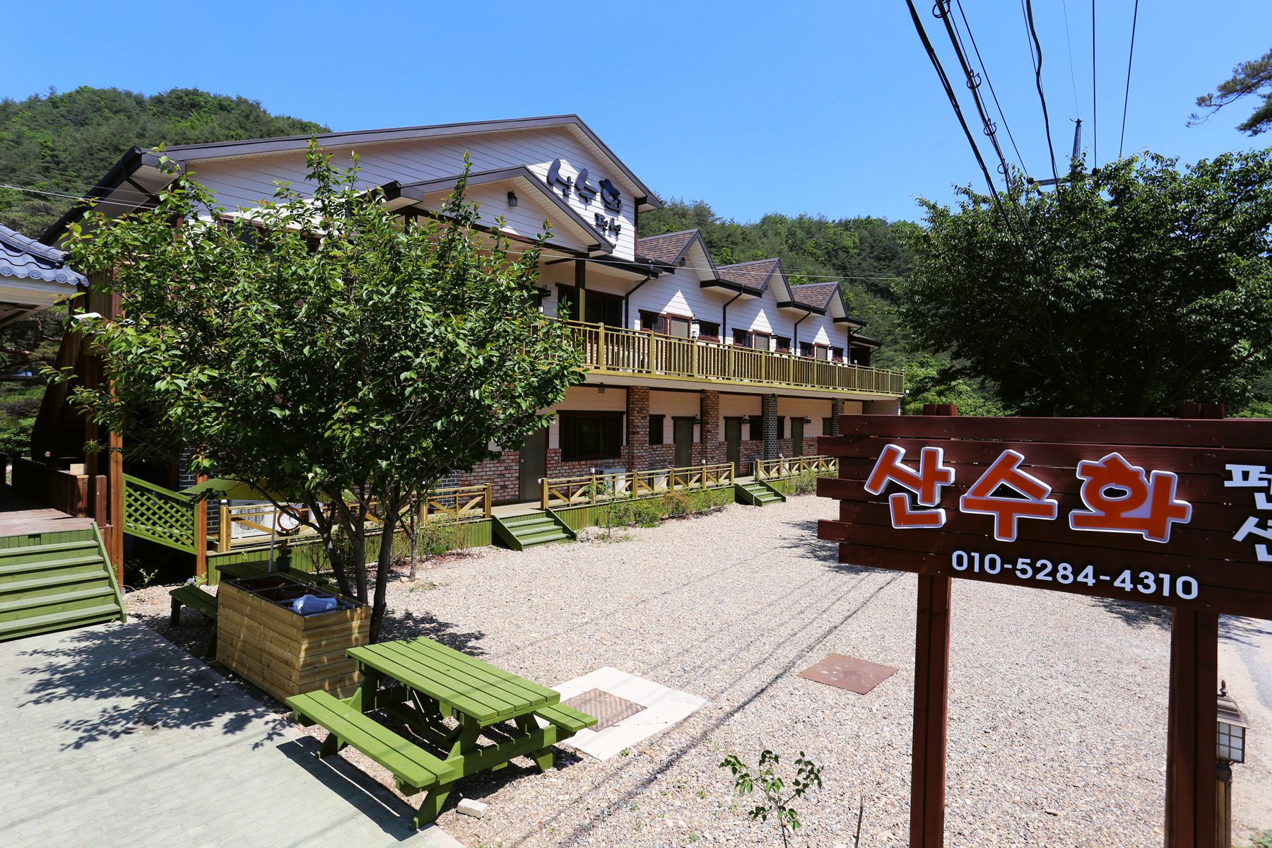 경북 상주에 위치한 산수화펜션은 병풍처럼 둘러싼 울창한 숲과 흐르는 계곡의 맑은 물소리를 들을 수 있는 펜션입니다.