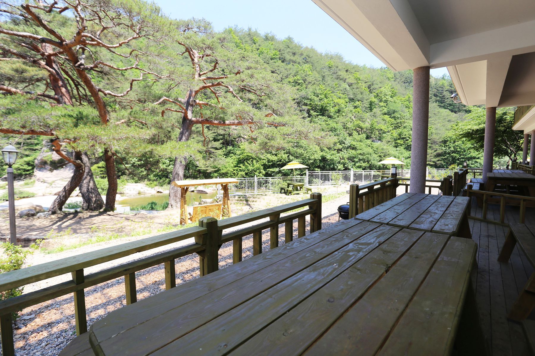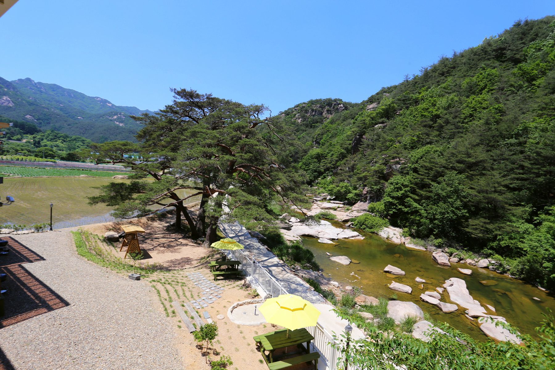 각 객실마다 테라스에서 편하게 계곡을 바라볼 수 있고 깊은 산의 경치를 감상하며 힐링할 수 있는 곳이라