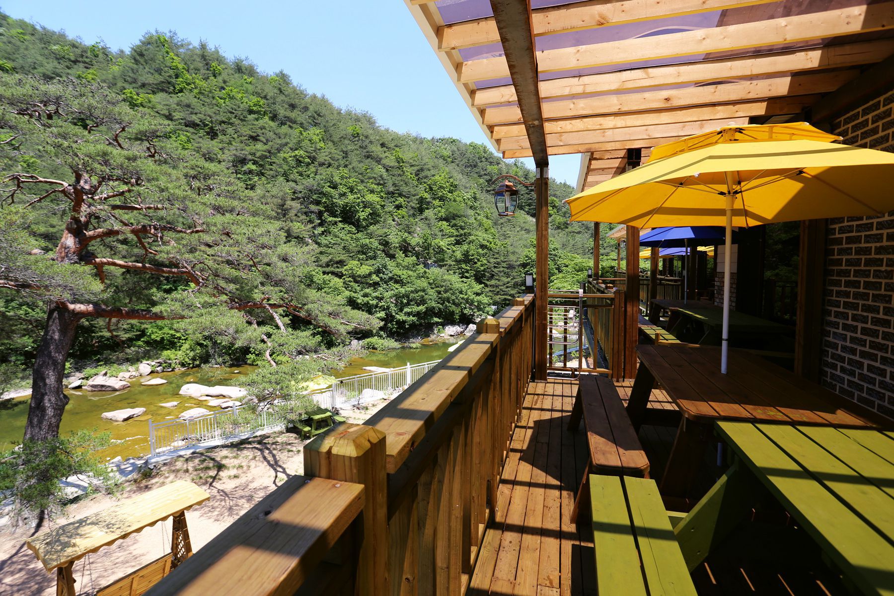 시원한 바람을 맞으며 계곡과 산의 정취를 감상하기에 좋은 테라스 자리는 최고의 명당자리랍니다. ^^