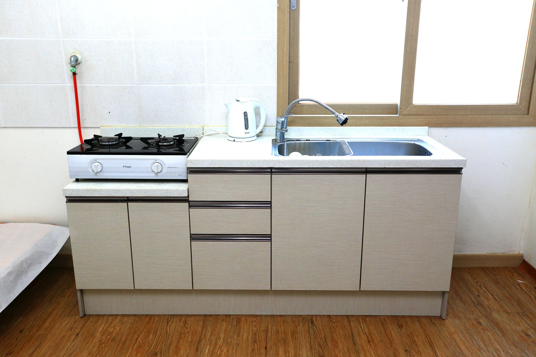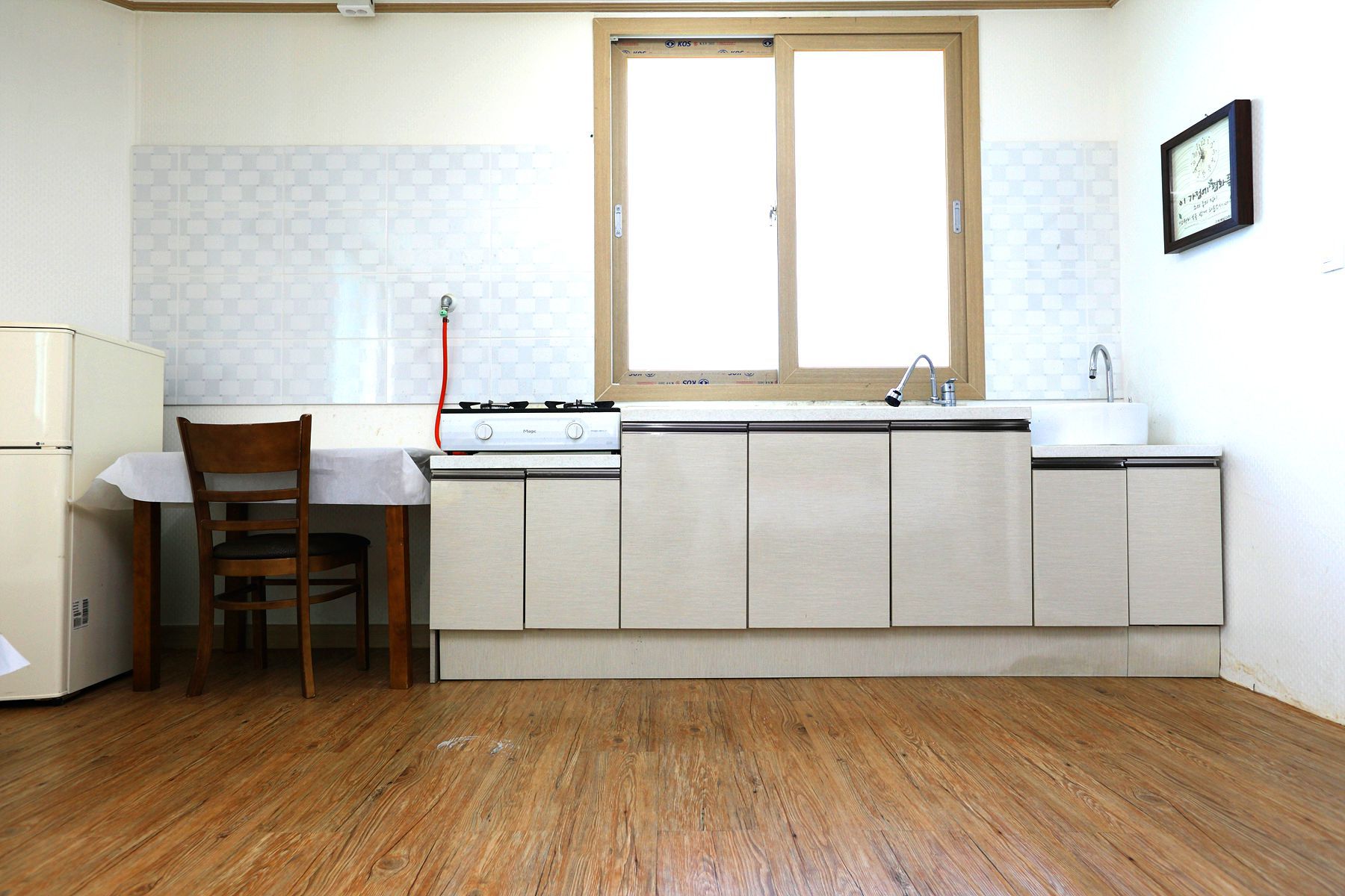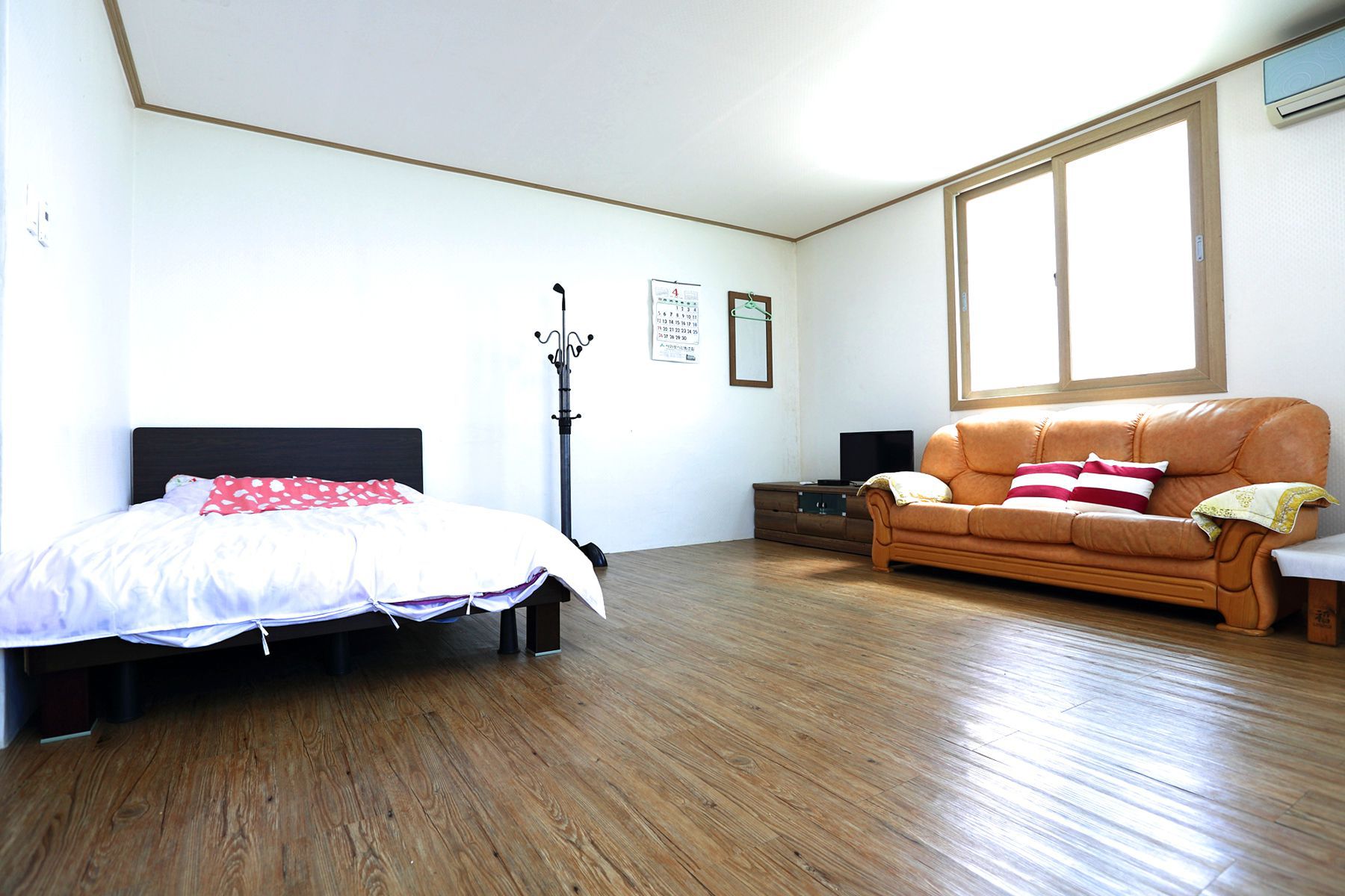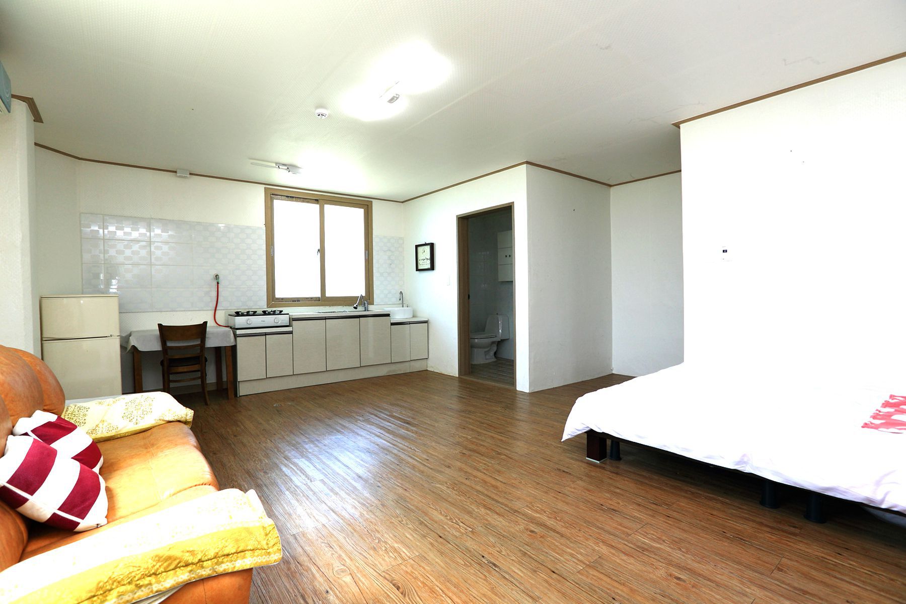 방마다 더블침대가 준비되어 있고, 에어컨, 냉장고 책상, 취사도구등
