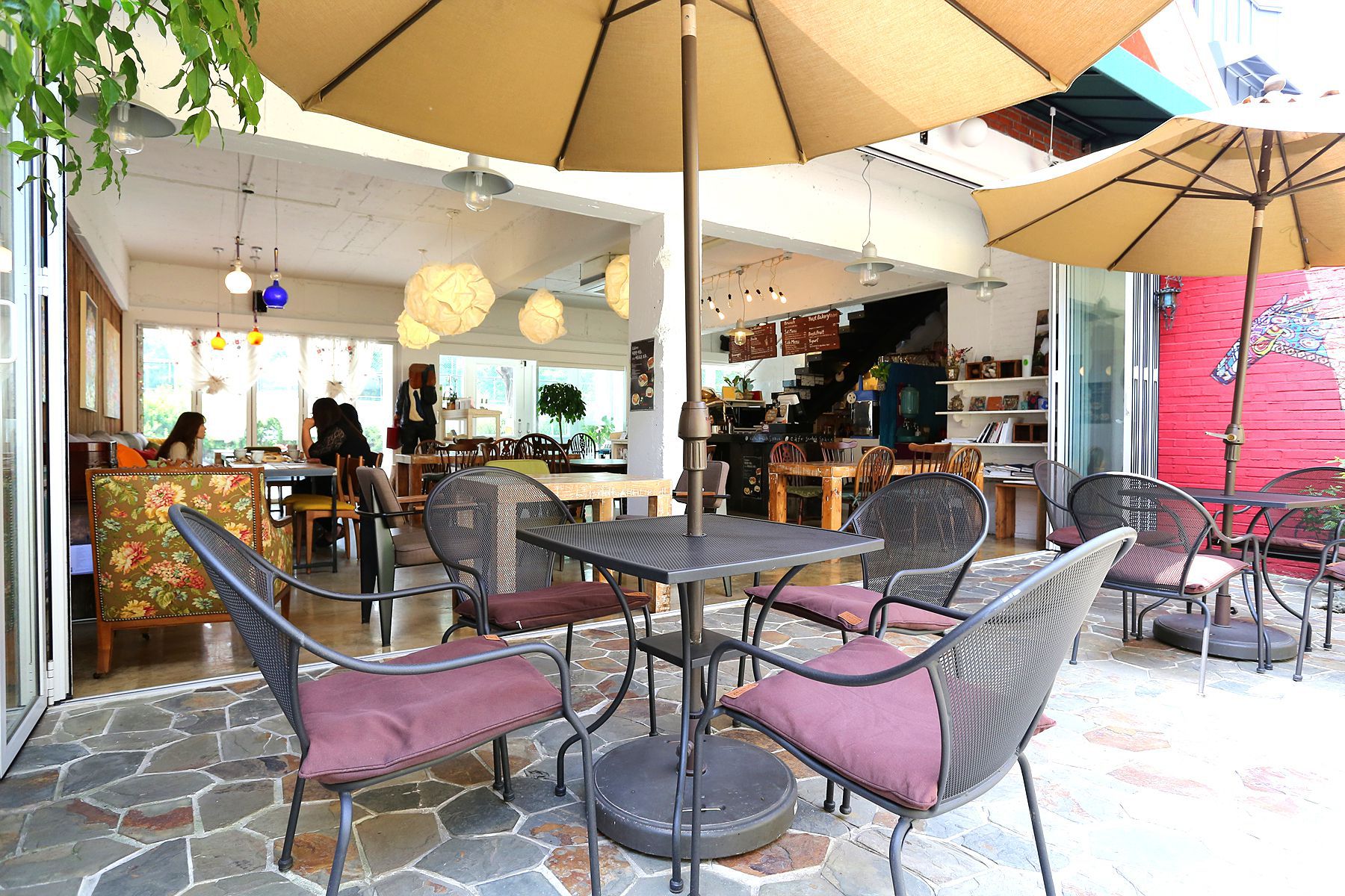 고급커피를 사용하여 풍미가 뛰어나고 카페의 작은 뜰에서 예술벽화를 보며 여행지의 여유를 즐길수 있습니다.