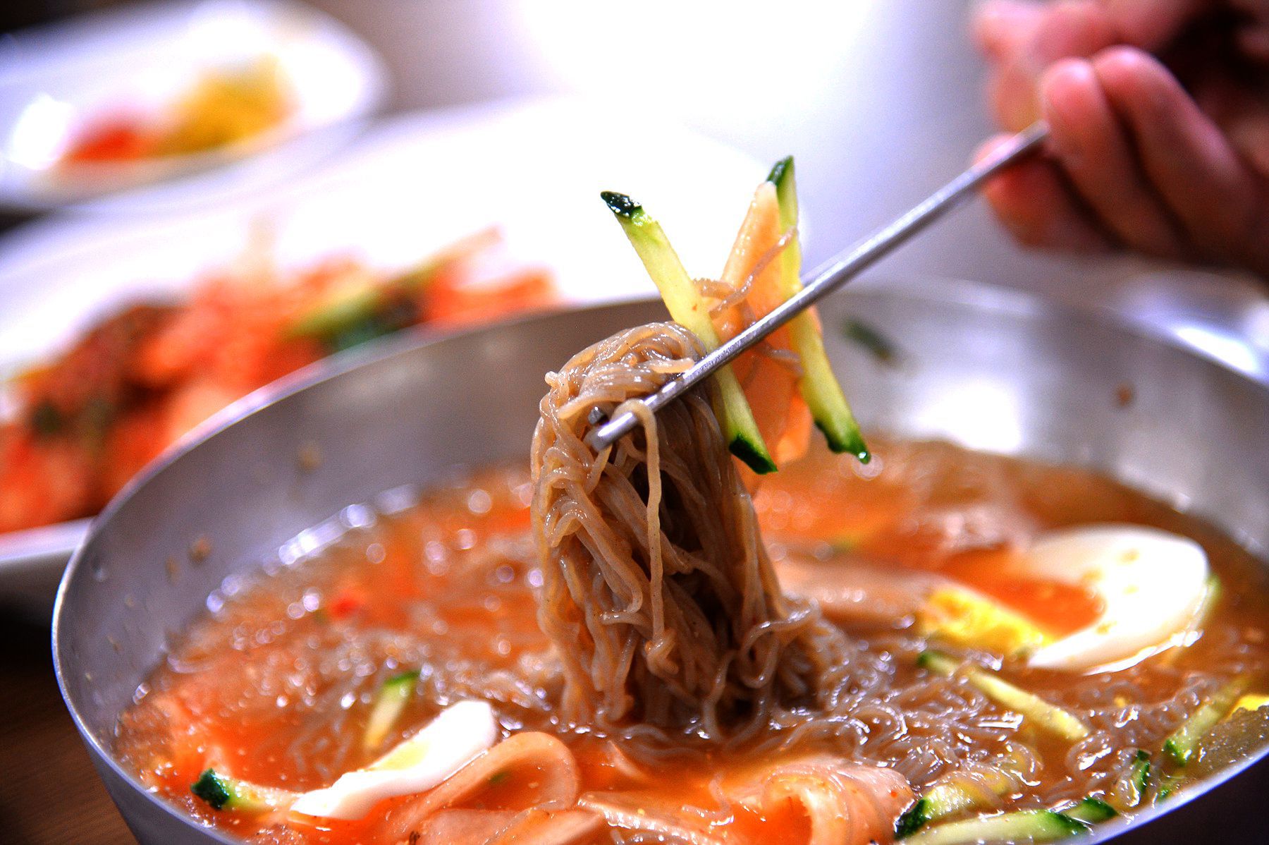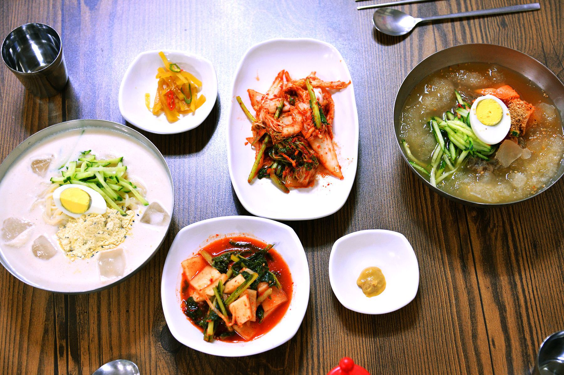 6~8월에 제공되는 계절음식으로 콩국수와 냉면이 준비되고 있습니다.