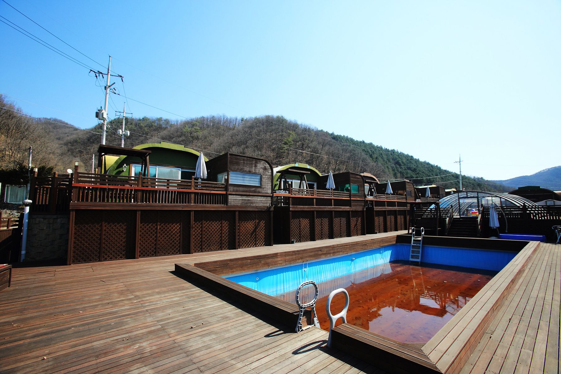 실내수영장및 실외 수영장도 갖추고 있으며 제트스파,카페 단독 실내바비큐장,야외바비큐장,자전거도로등