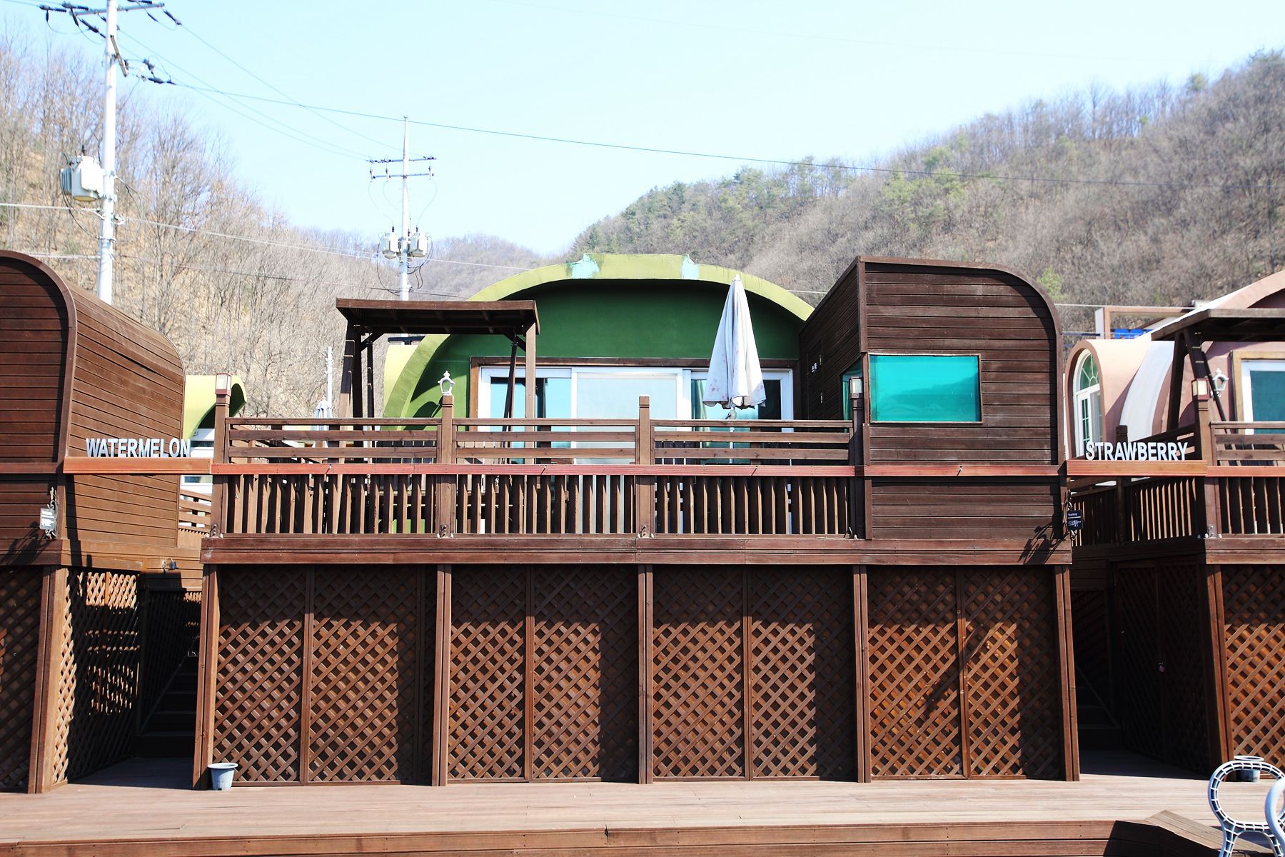 모든 객실이 홍천강을 바라보고있으며 독립형 돔구조와 큐브구조로 설계되어있으며