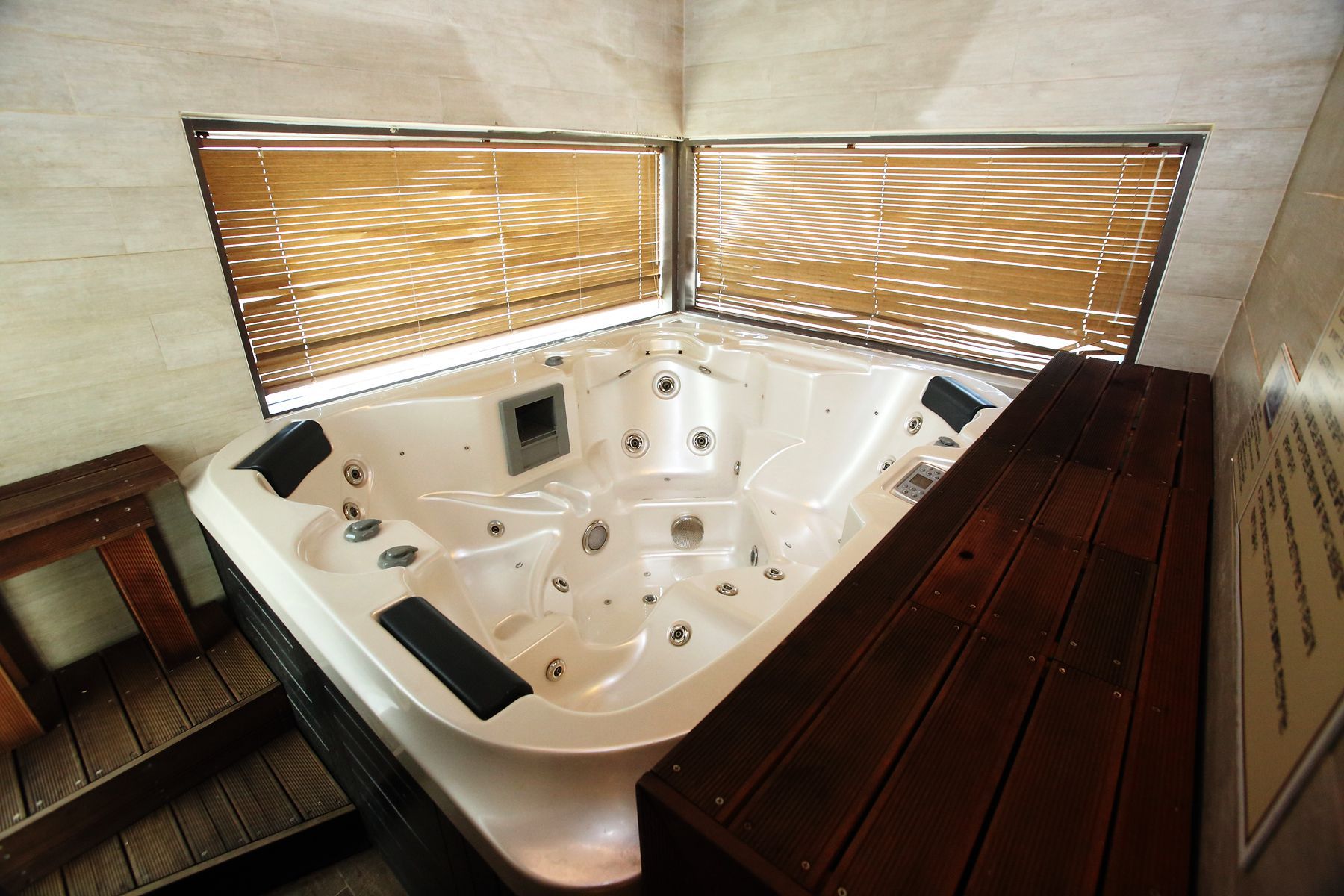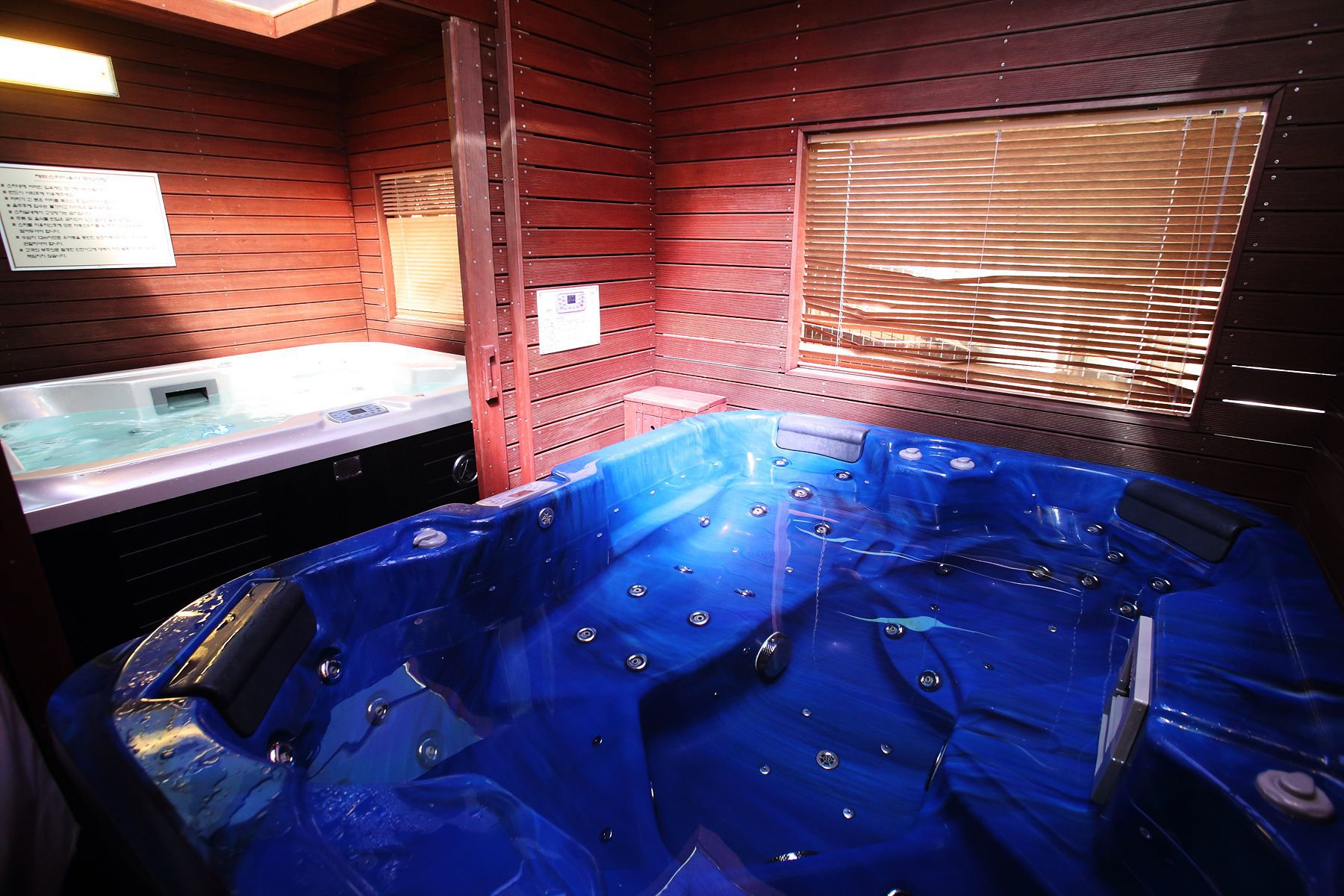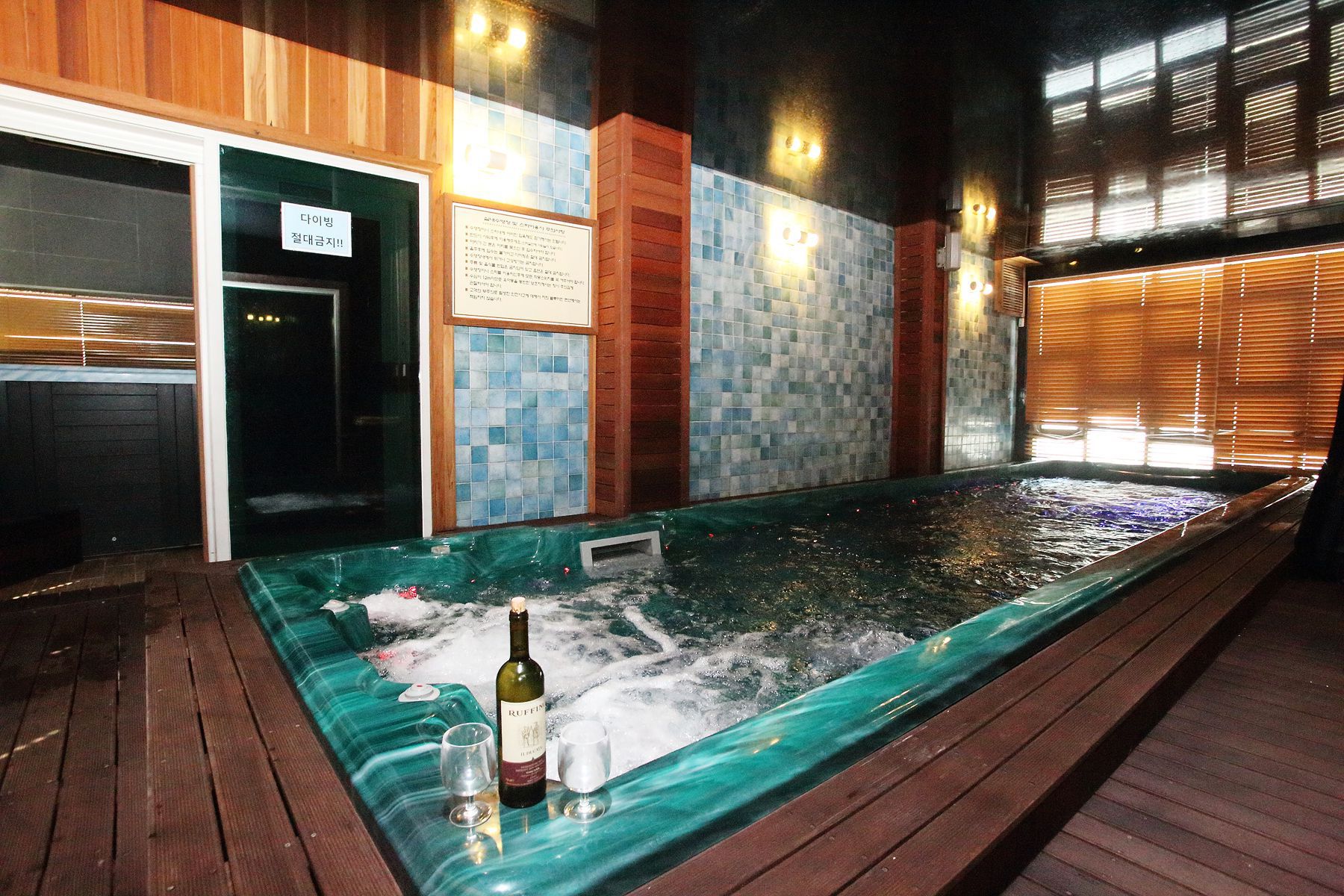 풀빌라객실에는 실내대형수영장및 6인용대형스파가 준비되어있으며 이용시간제한없이 항상 따뜻한 온수가 공급됩니다.