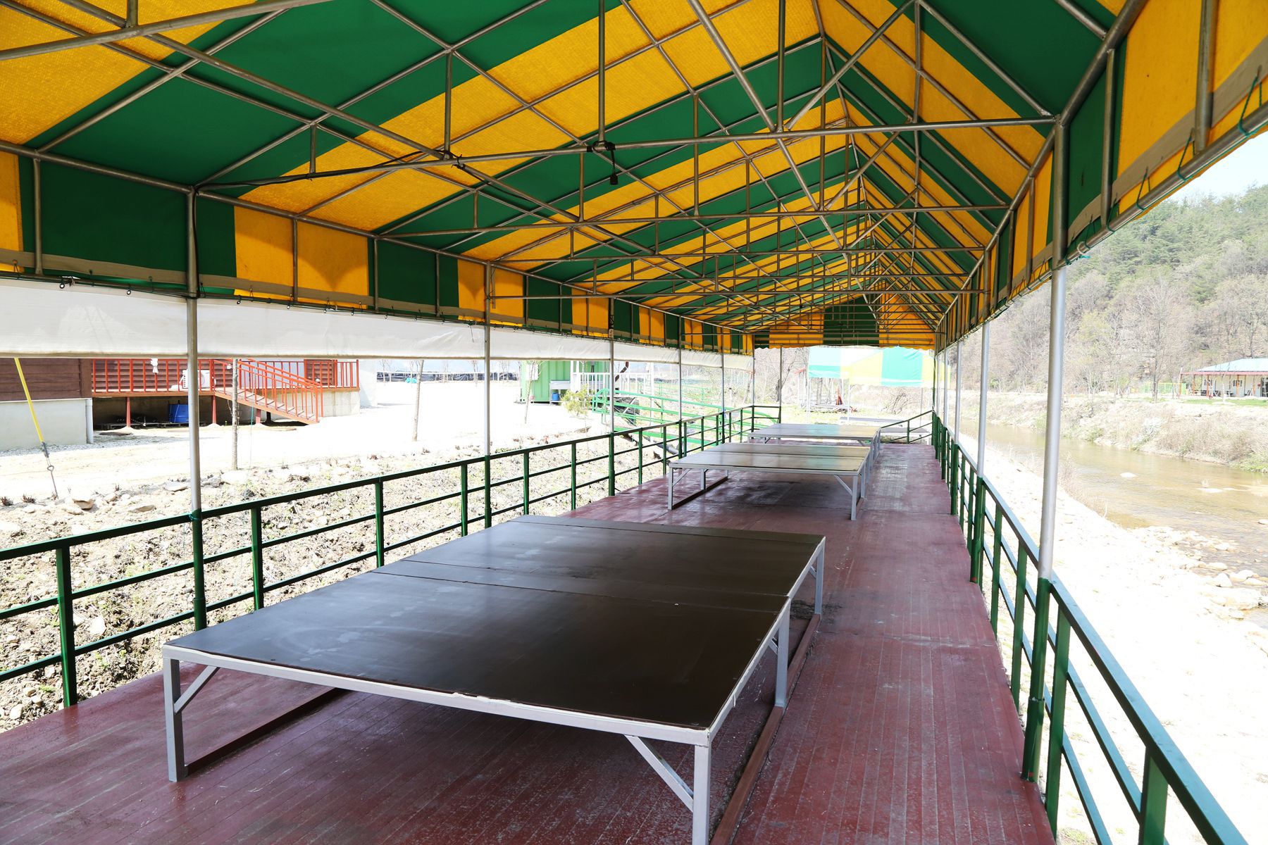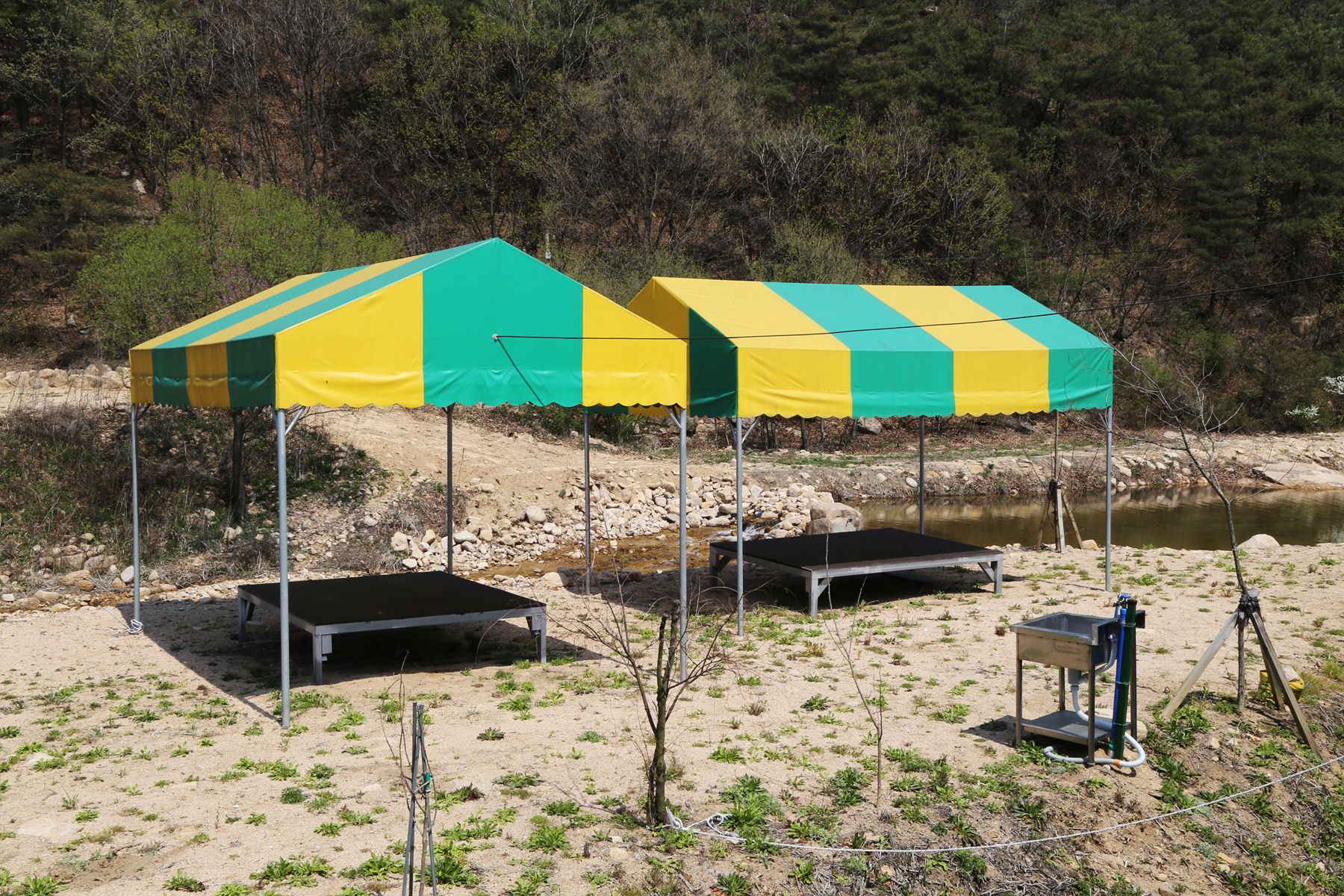 맑은 계곡물 앞에 평상과 햇빛을 가려줄 천막이 설치되어있어 물놀이하다 쉴 수도 있으며