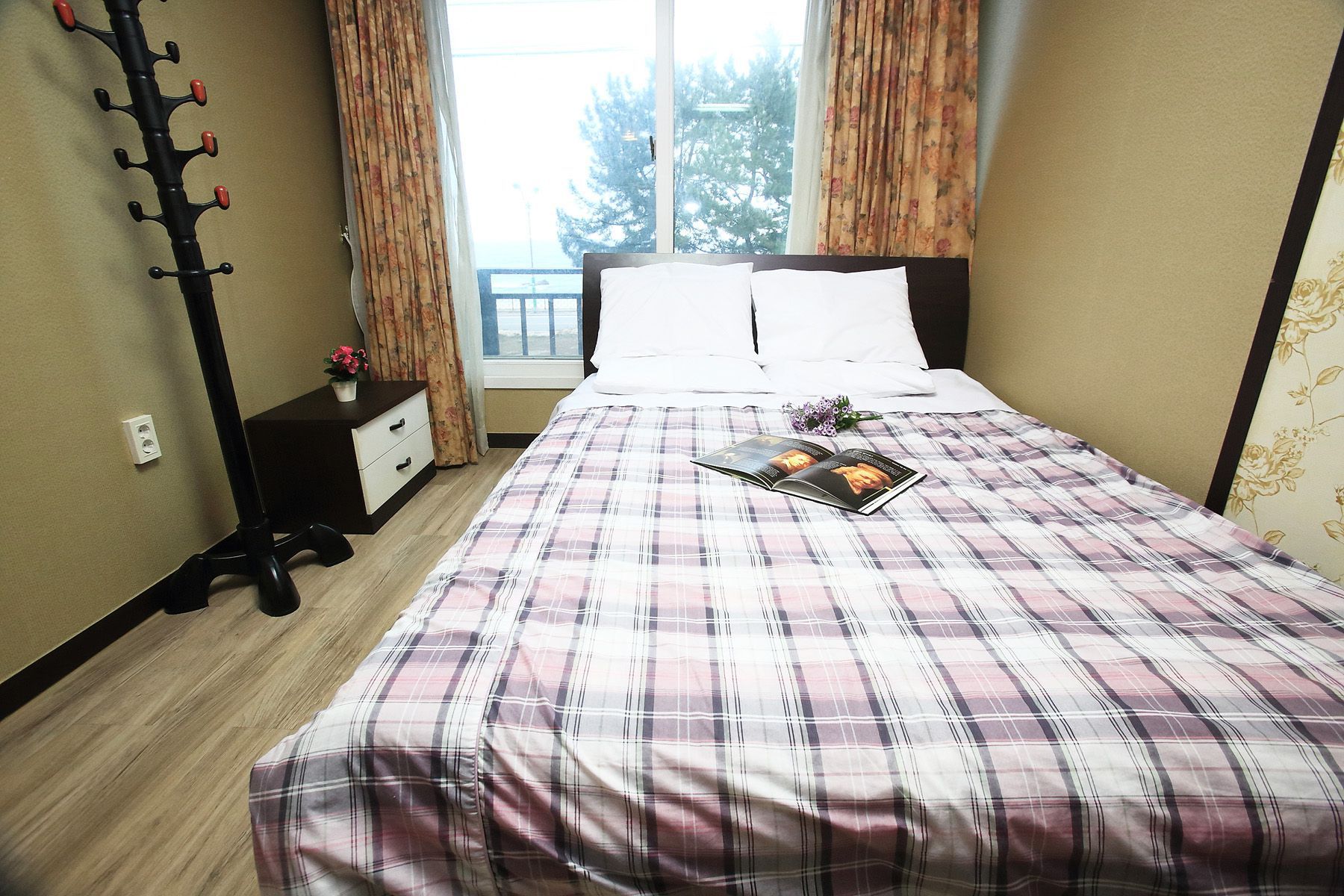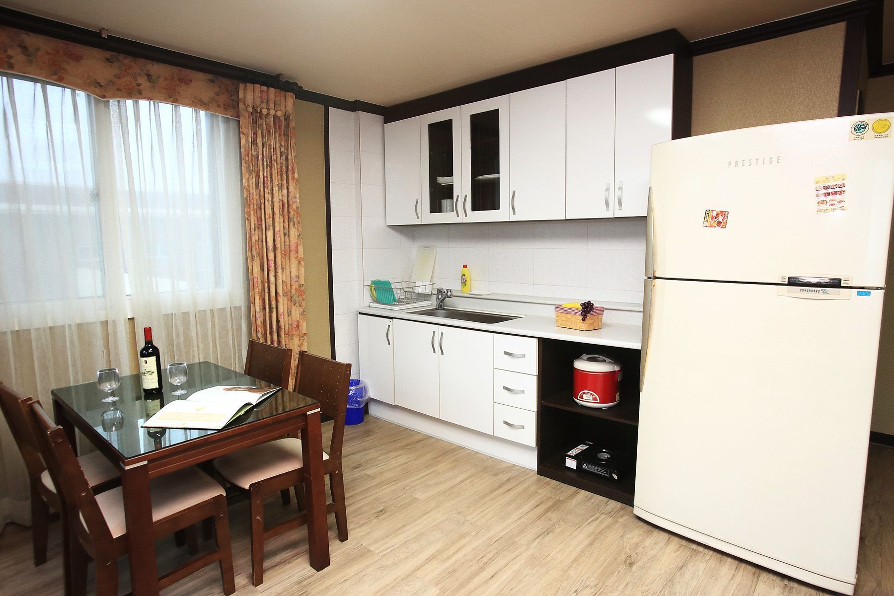 기준인원 3명의 10평형 객실로 침대룸+거실+주방+화장실로 구성되어 있습니다.