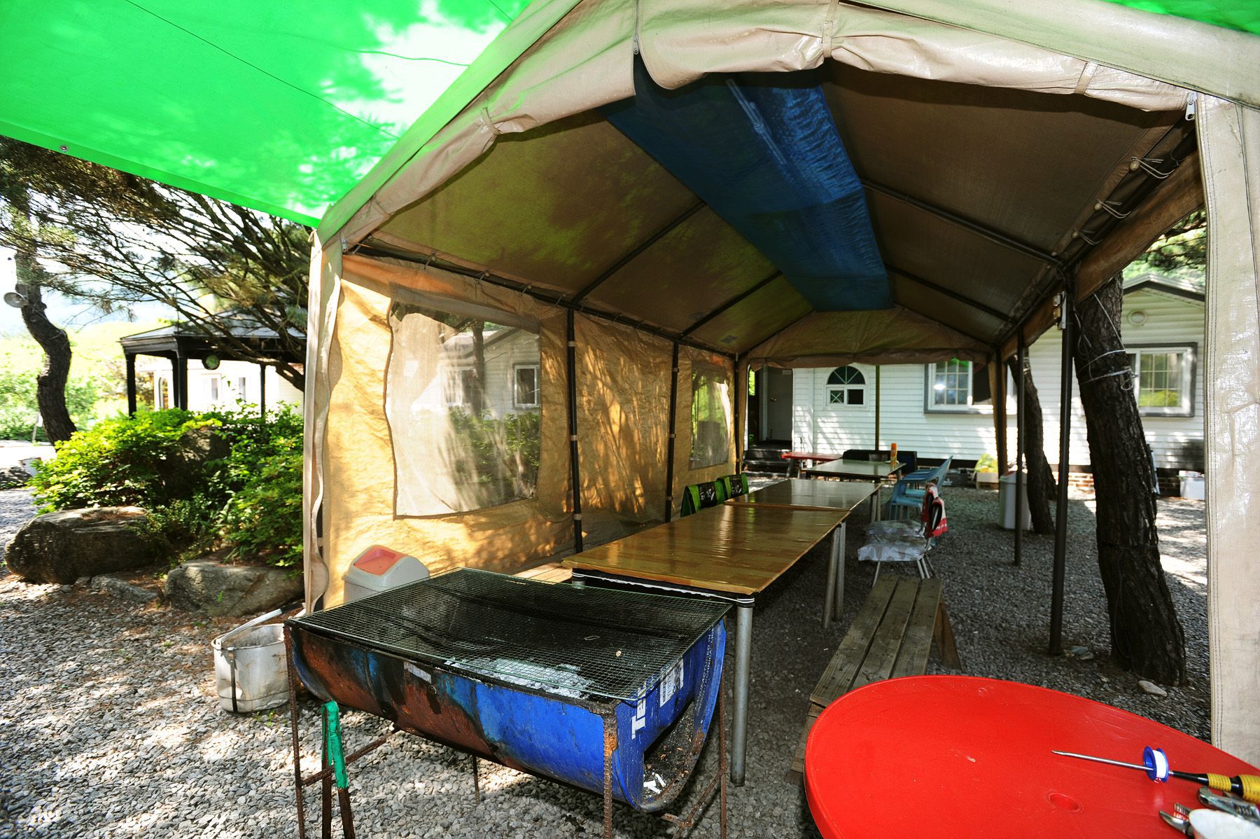 펜션 앞쪽에는 파쇄석을 깔아 오토캠핑장으로 이용하기 편하게 조성해 놓아