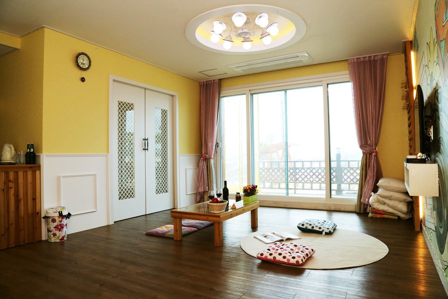 기준 2명 최대 6명이 머물 수 있는 산뜻한 옐로우톤으로 꾸며진 '진실(101)'