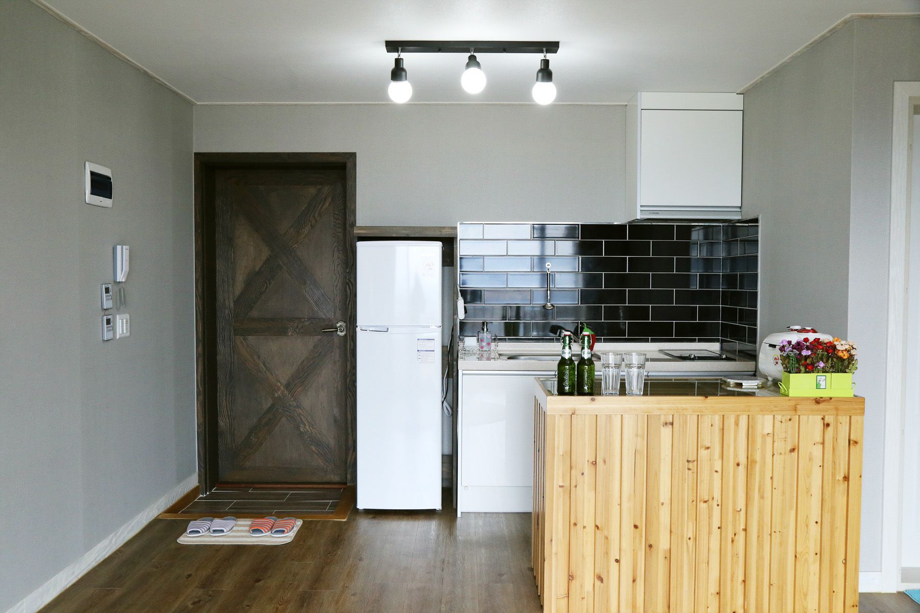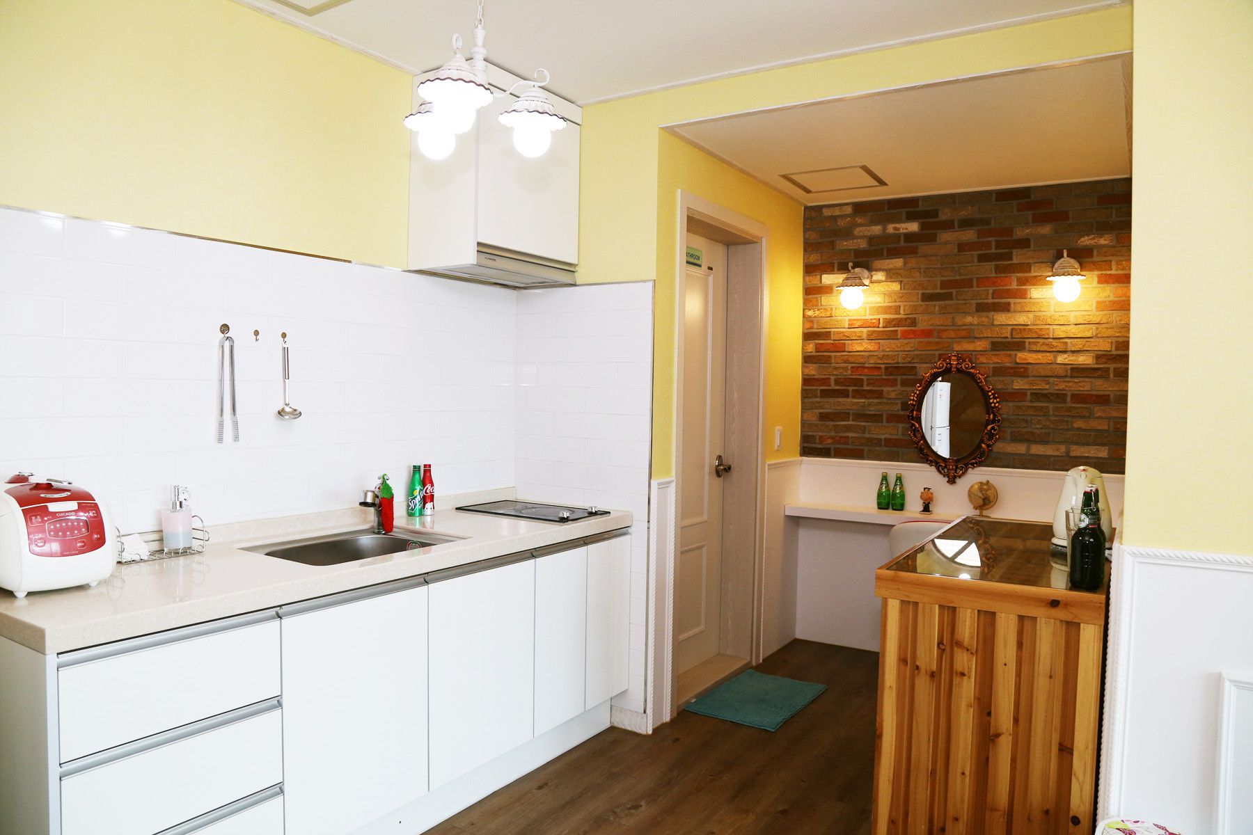 벽걸이TV,침대,에어컨,인덕션,취사도구,기본양념,타올,비누,치약,삼푸등 다양하게 객실비품이 준비되어있습니다.