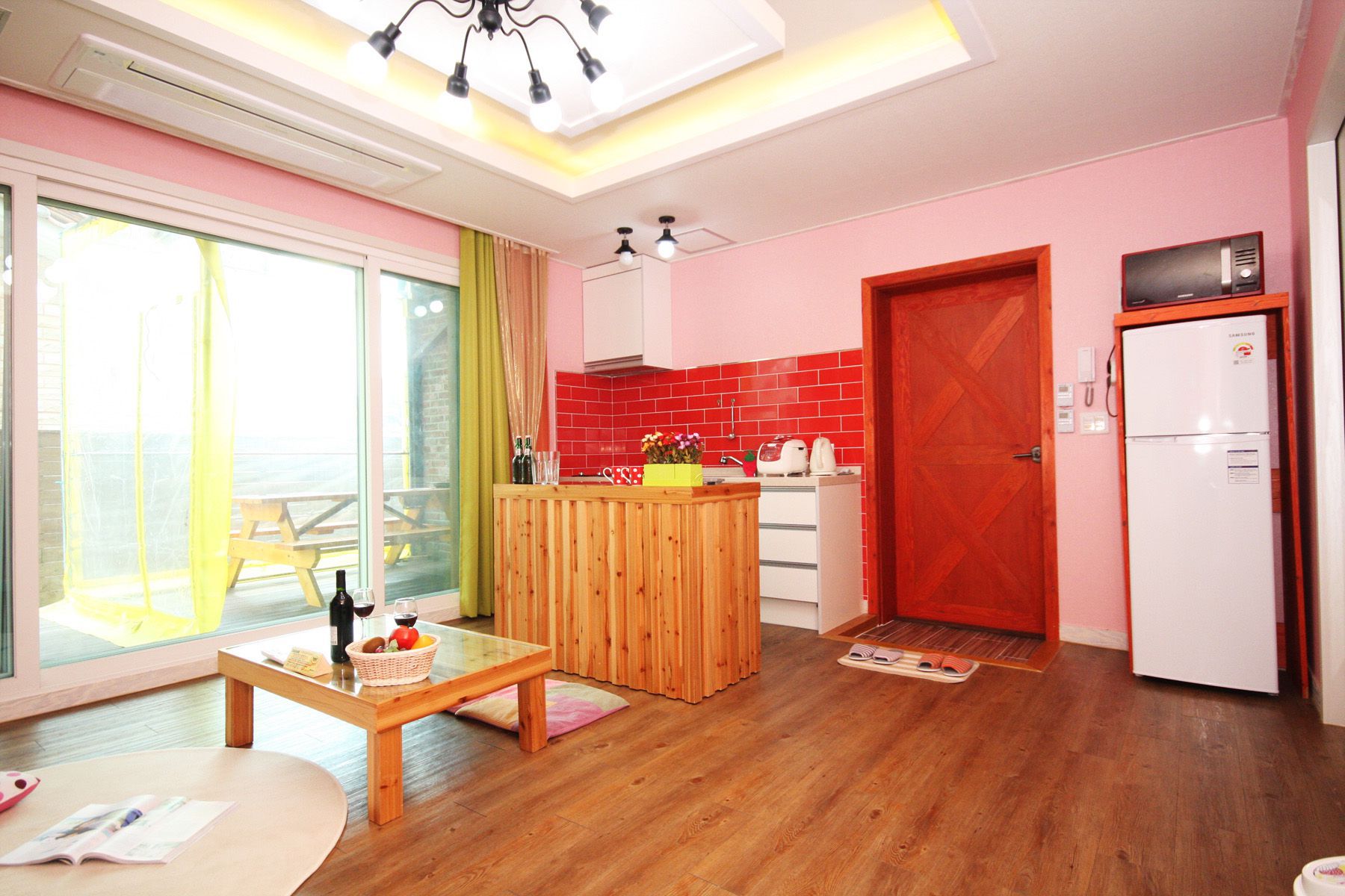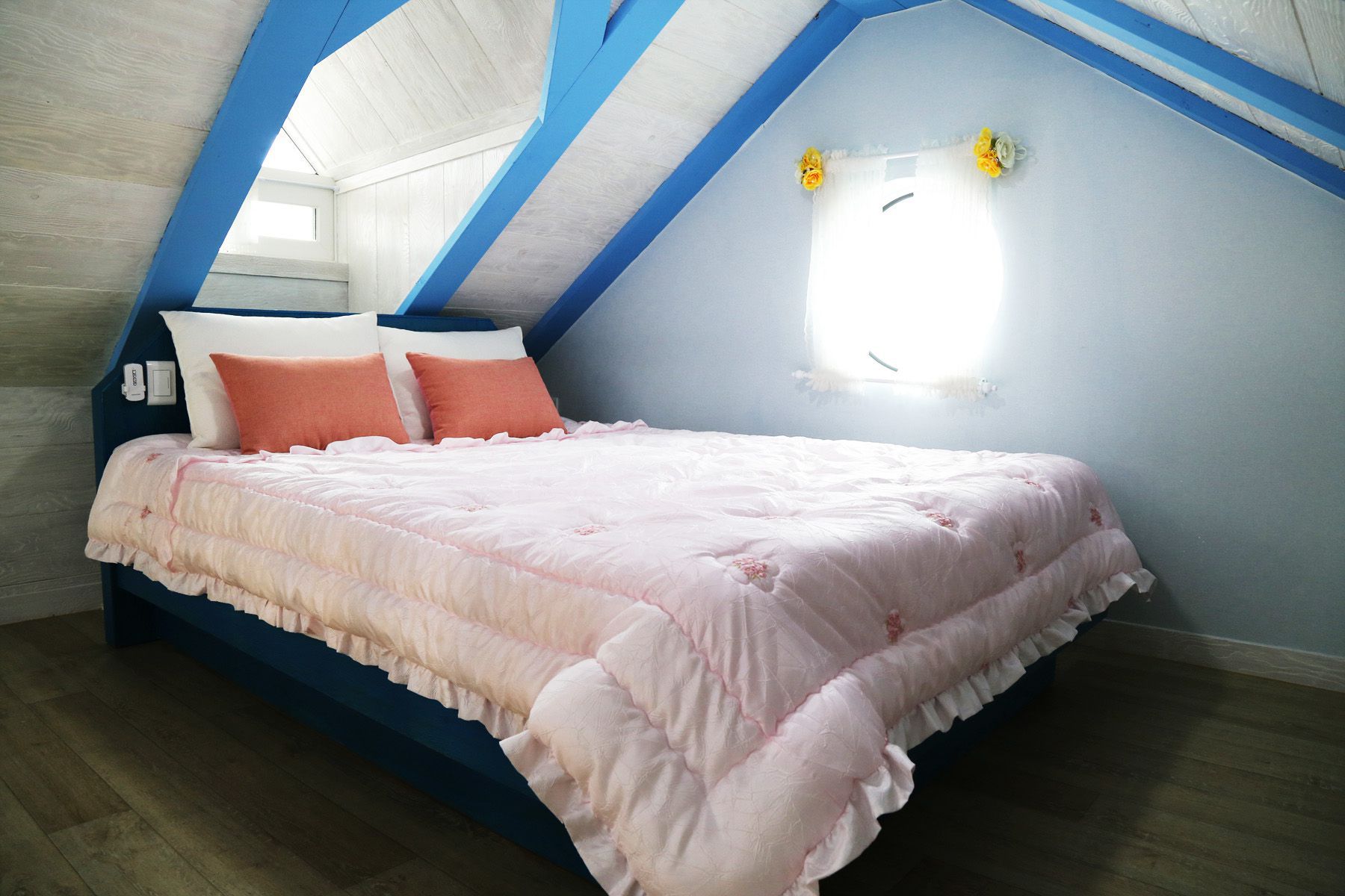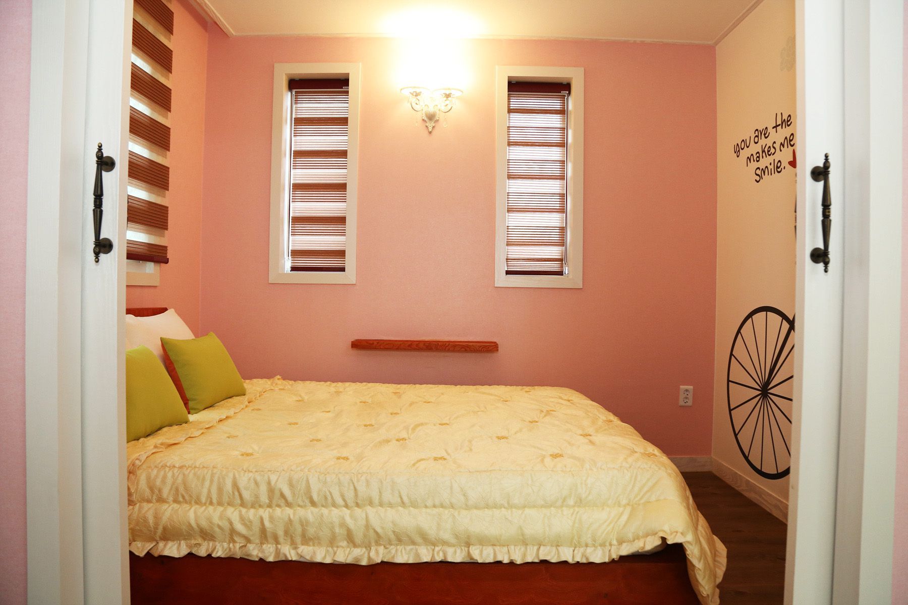 각 객실마다 인테리어와 색감이 다다르며 여성분들이 좋아하는 핑크톤의 러블리한 객실 믿음(102) 객실도 있습니다.