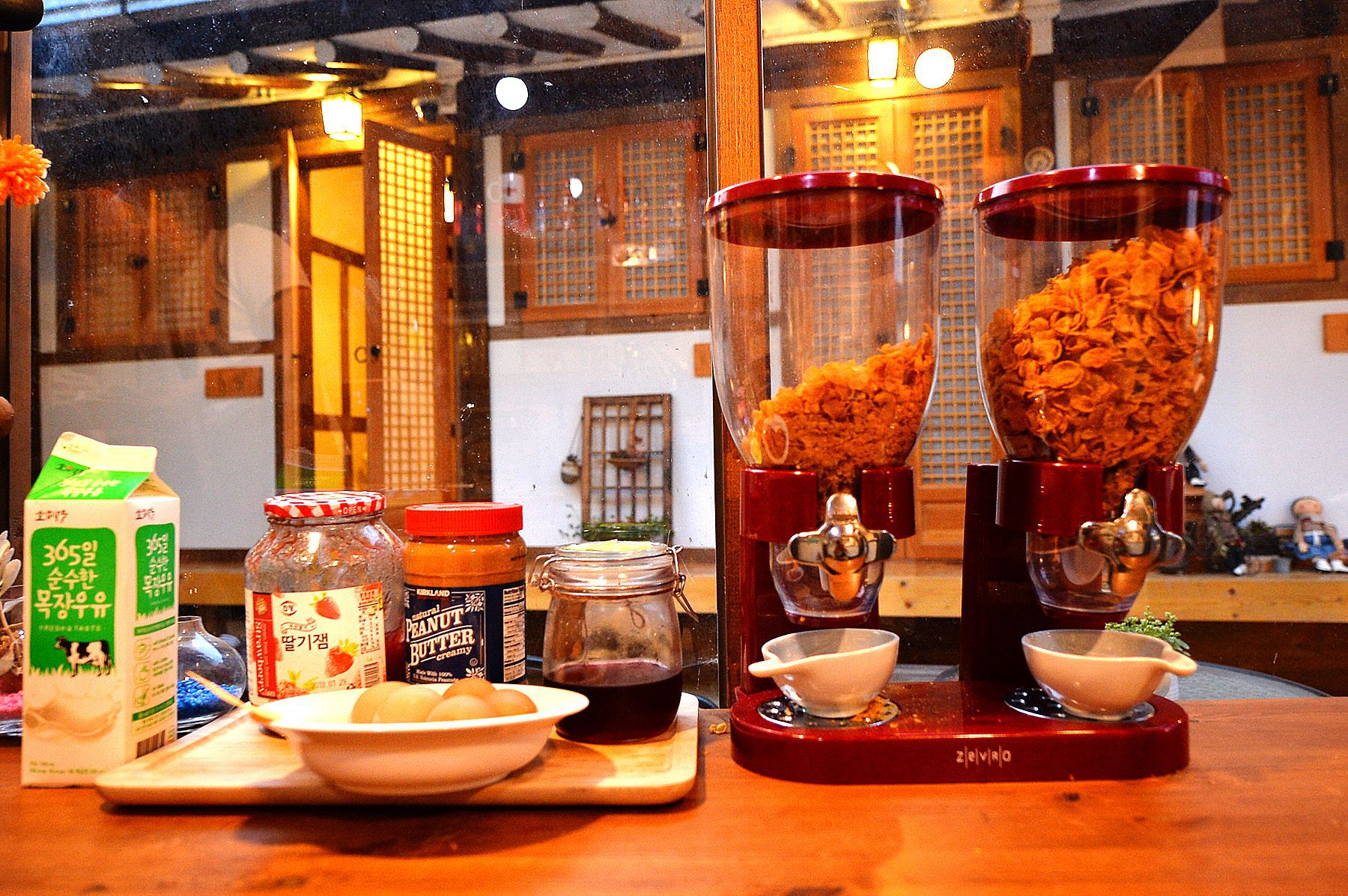 조식으로는 토스트와 차 를 셀프로 즐길수 있습니다~!