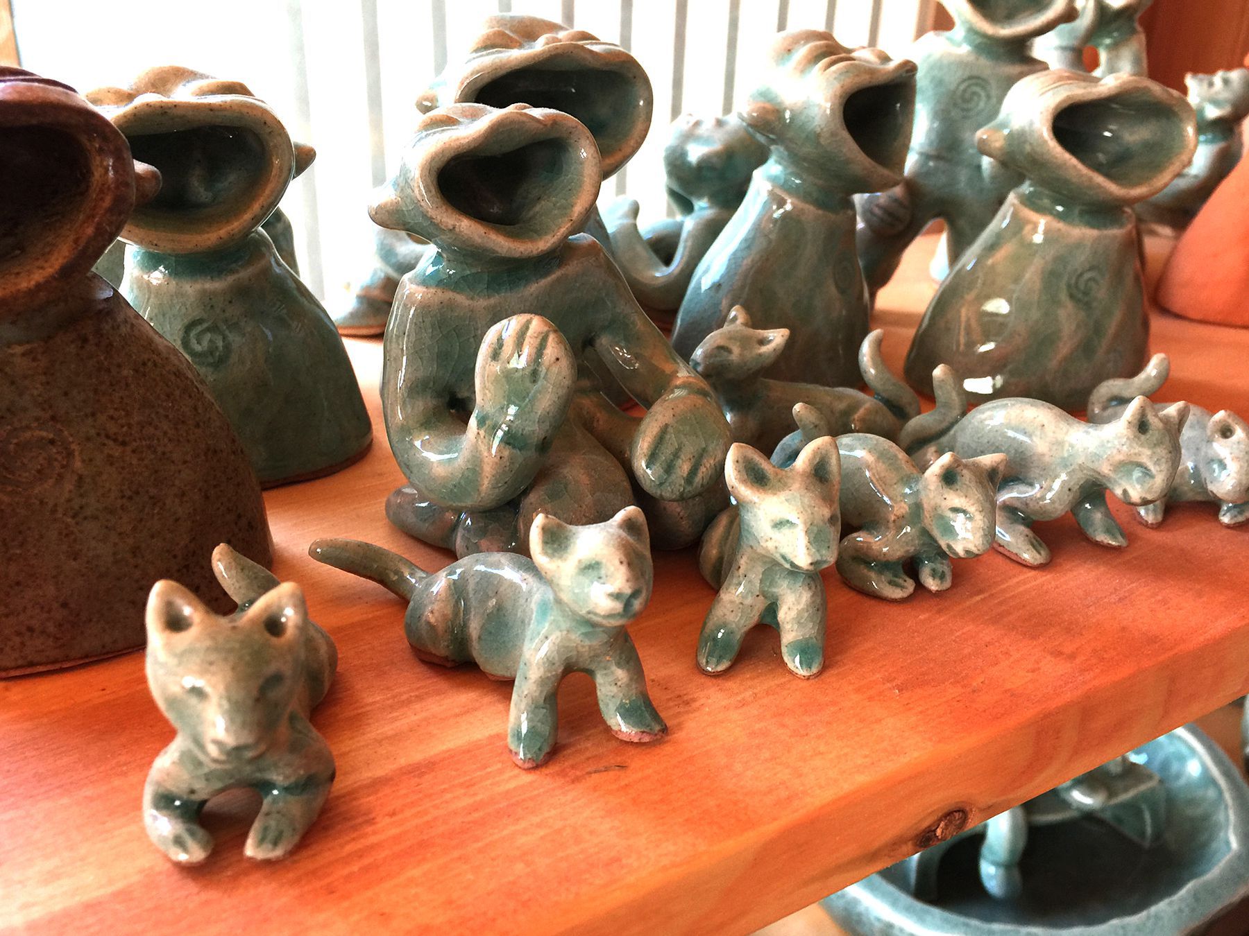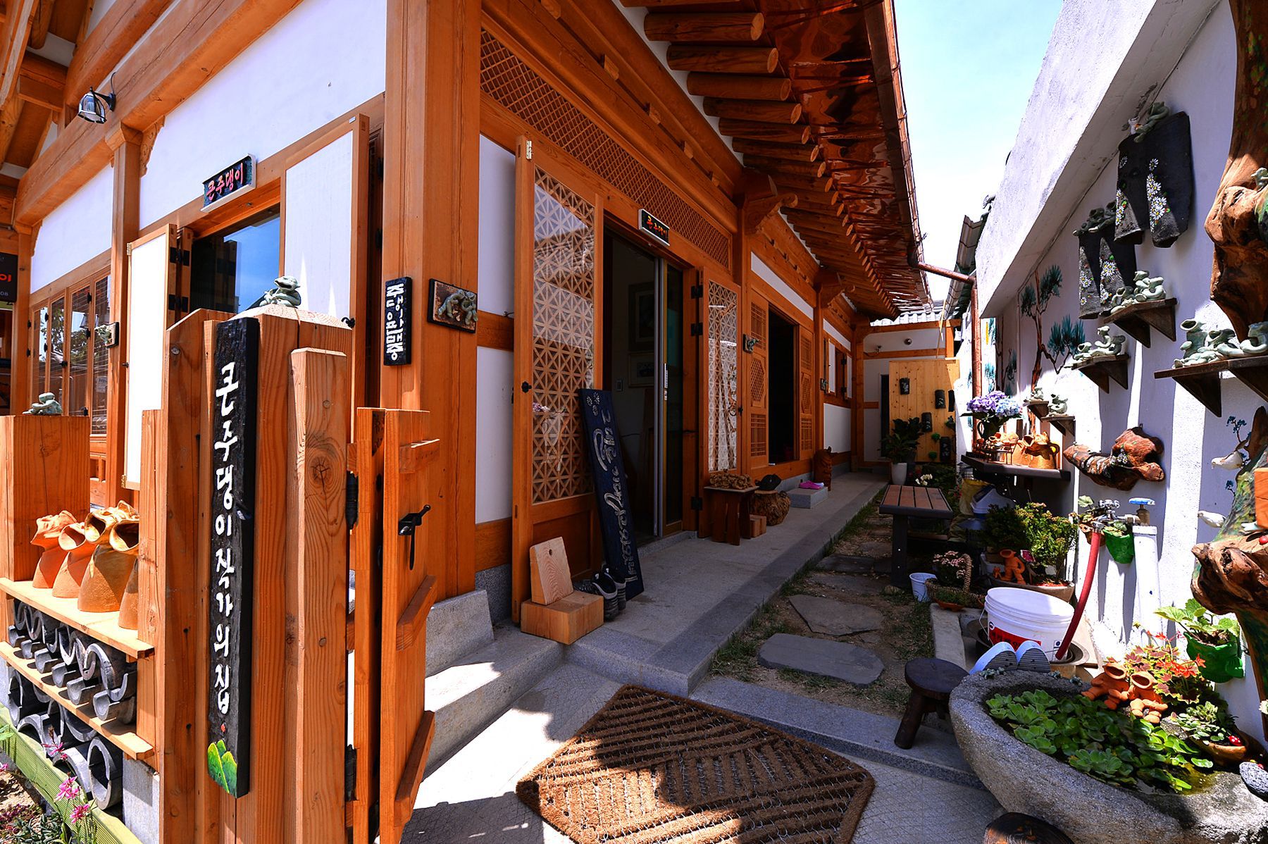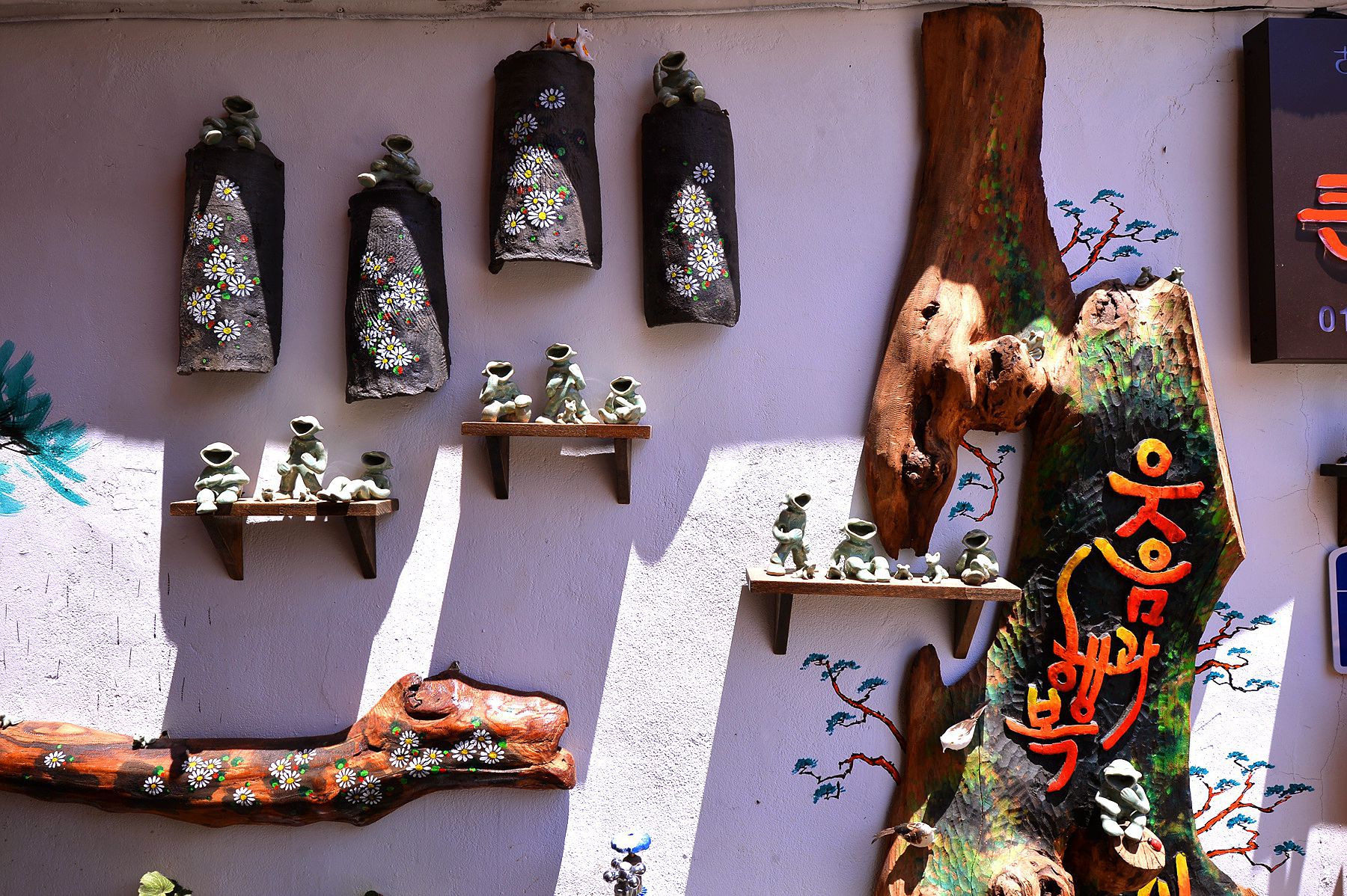 큰입을 가진 도자기 인형들이 많은 손님을 반기고 있습니다.