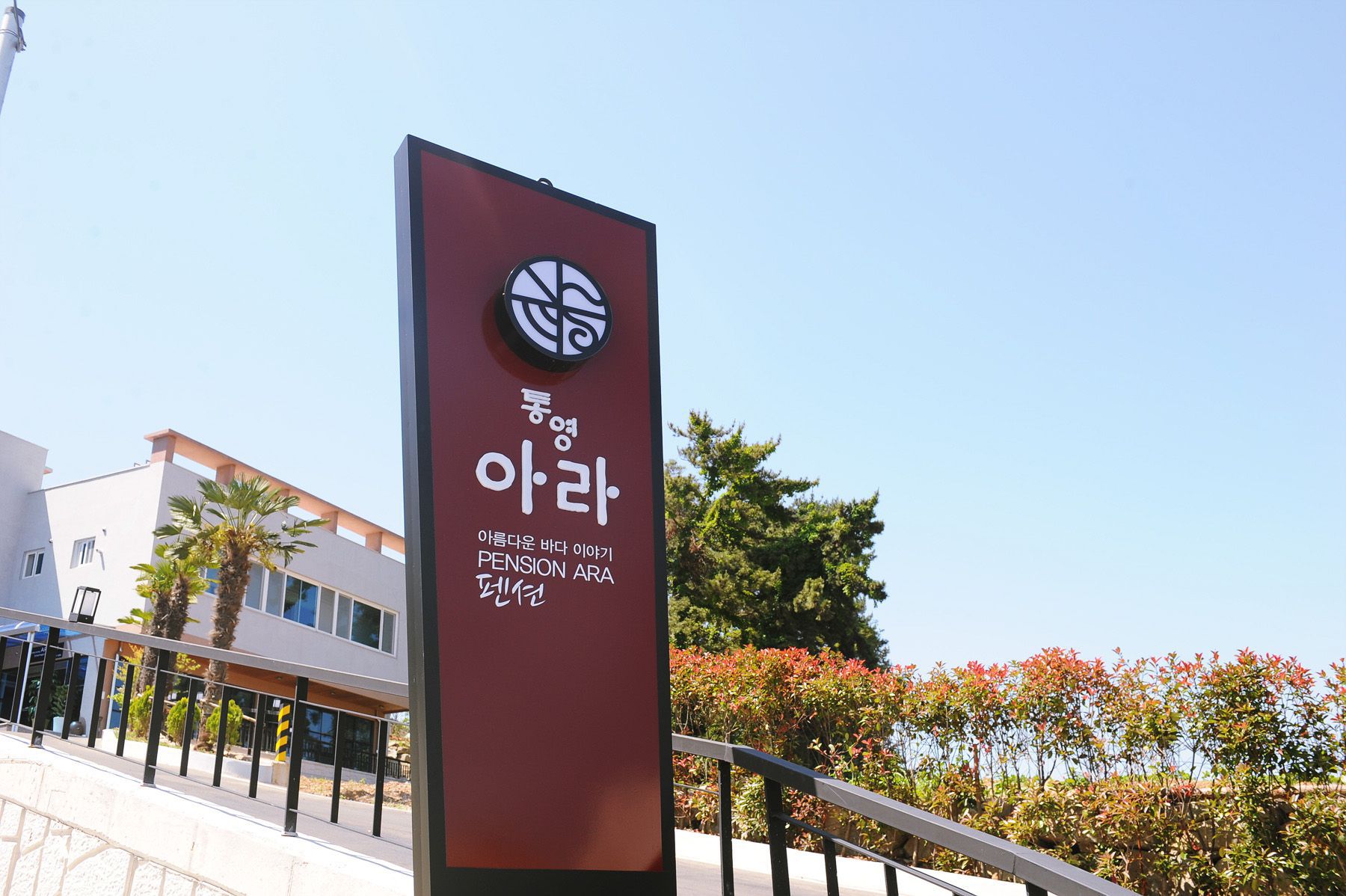통영과 거제의 경계에 있어 두군데를 편히 이동할 수 있는 장점이 있는 '통영아라펜션'