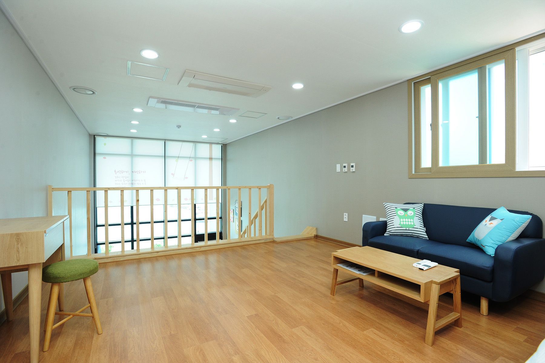 가족이나 모임단위의 단체객들이 머물 수 있는 4~6인 복층 투룸형 객실 가족룸으로