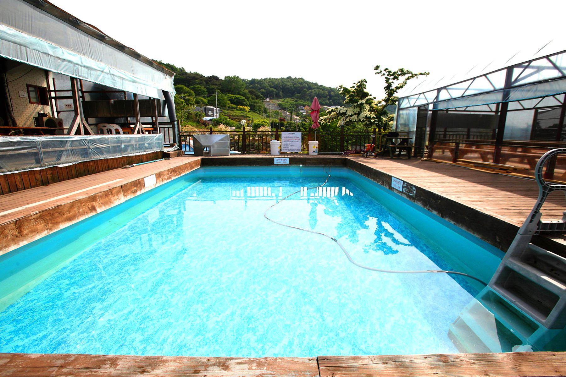 부대시설로는 수영장, 족구장, 바베큐시설, 회사랑푸드코트, 바위낚시, 바다산책로 등이 있습니다.
