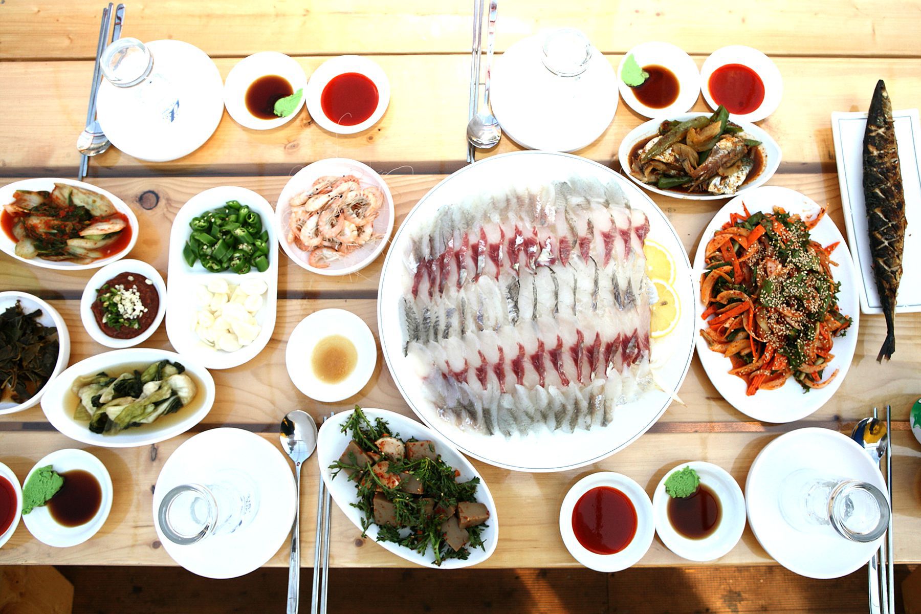 밑반찬은 바다에 그물에 잡히는 대로 상황이 바뀔수 있고 양채와 장아찌종류도 계절에 따라 변동될수 있습니다.