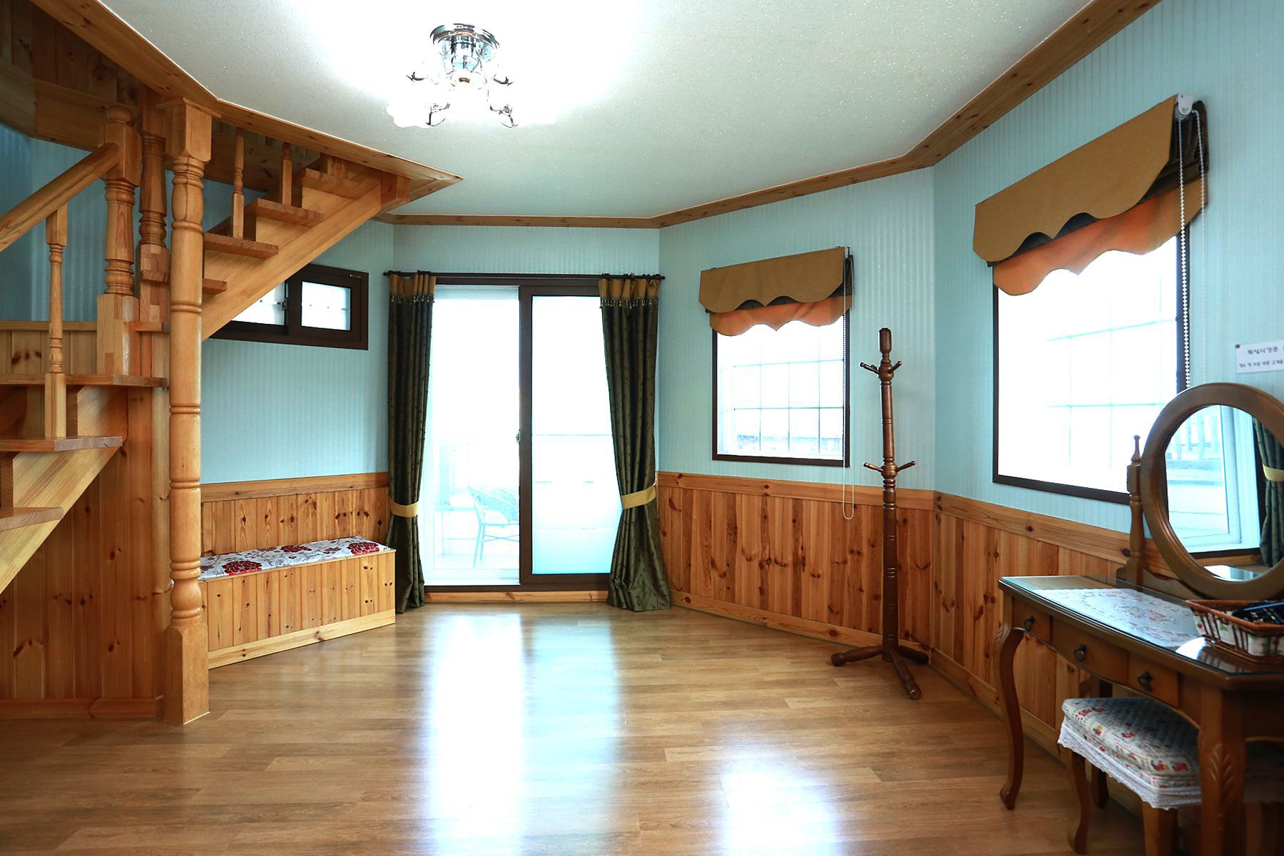 미르펜션은 원룸형3개,투룸1개,복층형2개로 총 6개의 객실로 구성되어 있습니다.