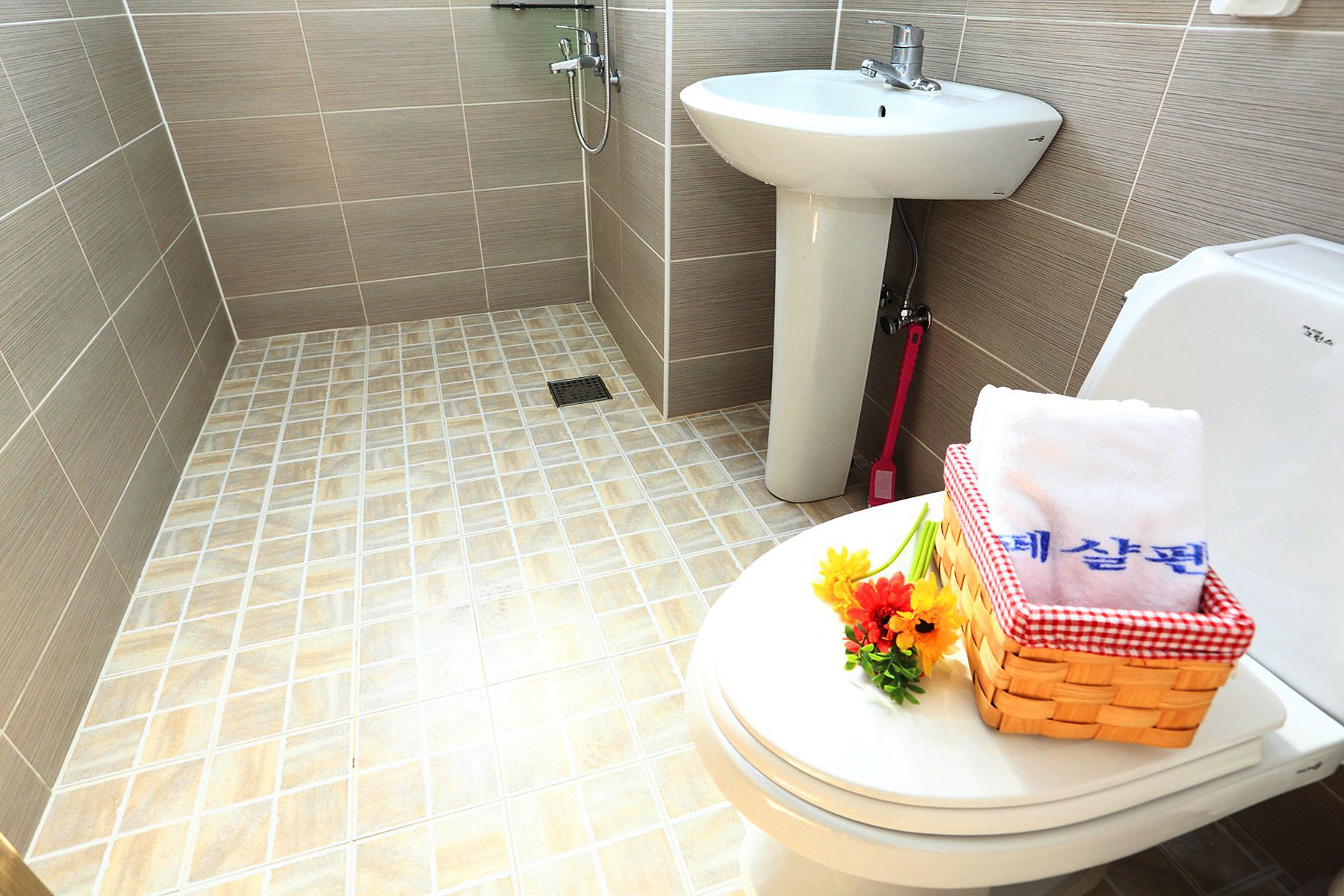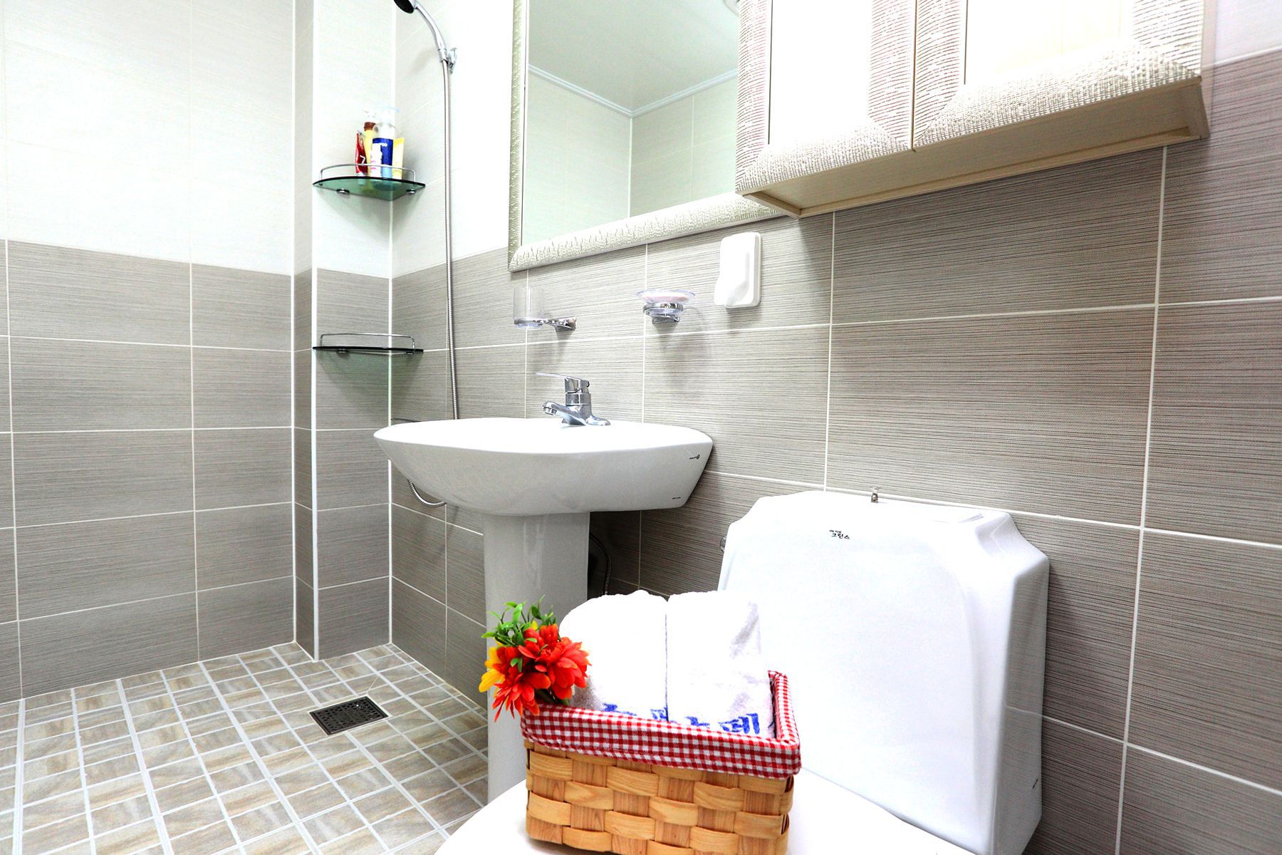 넓고 쾌적한 욕실에는 온수가 잘 나와 개운하게 씻으며 하루의 피로를 풀수 있고