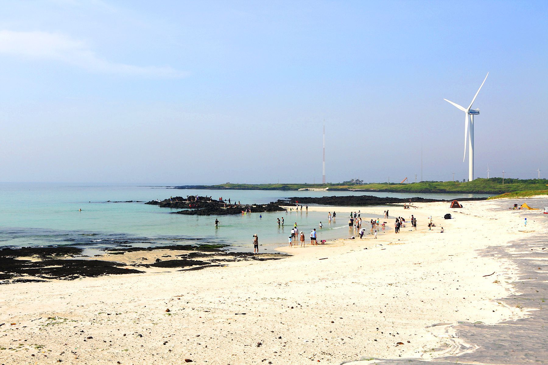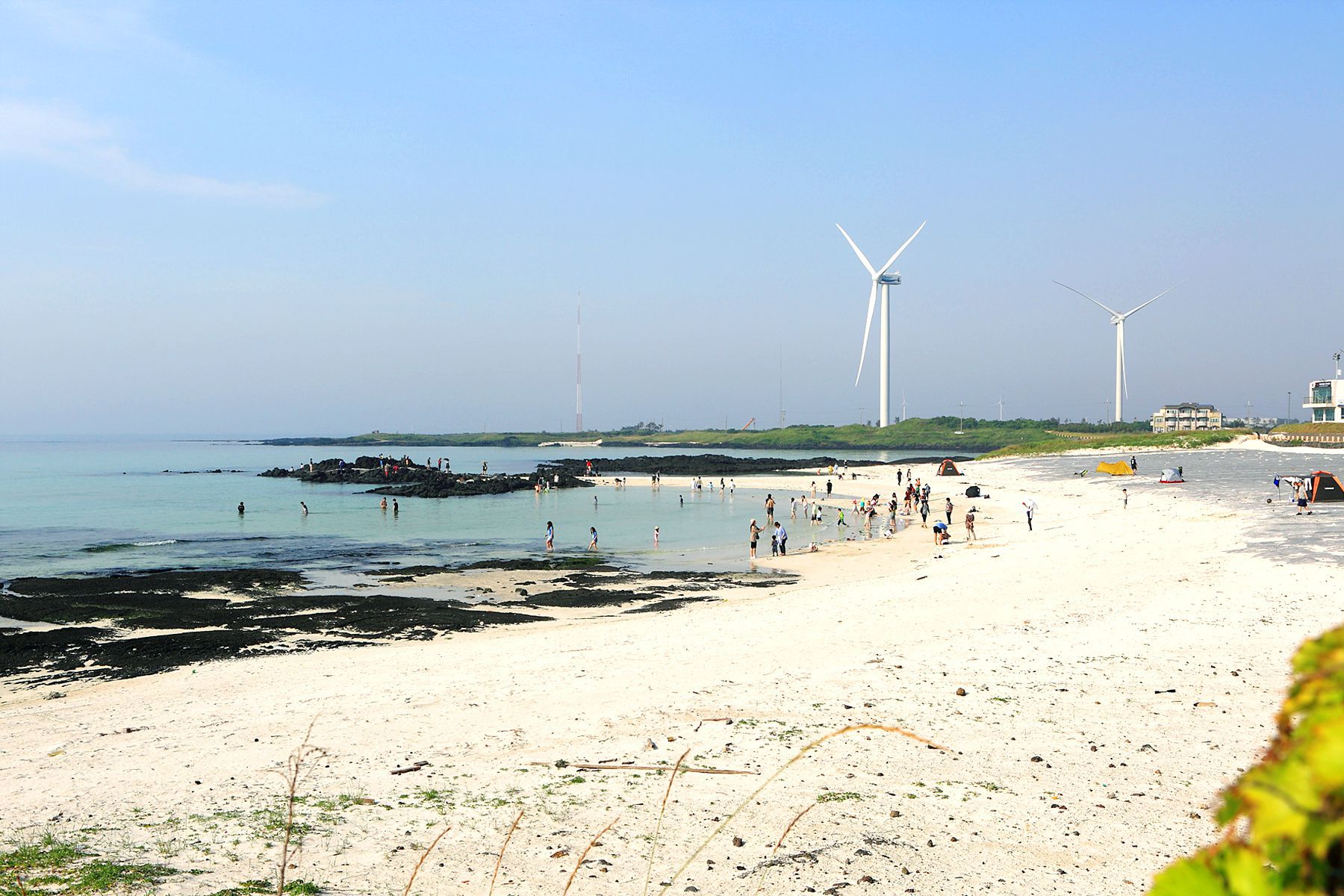 코발트 빛의 깨끗한 바다와 질 좋은 모래로 찾는 이의 마음을 사로잡고 있는 김녕해수욕장에