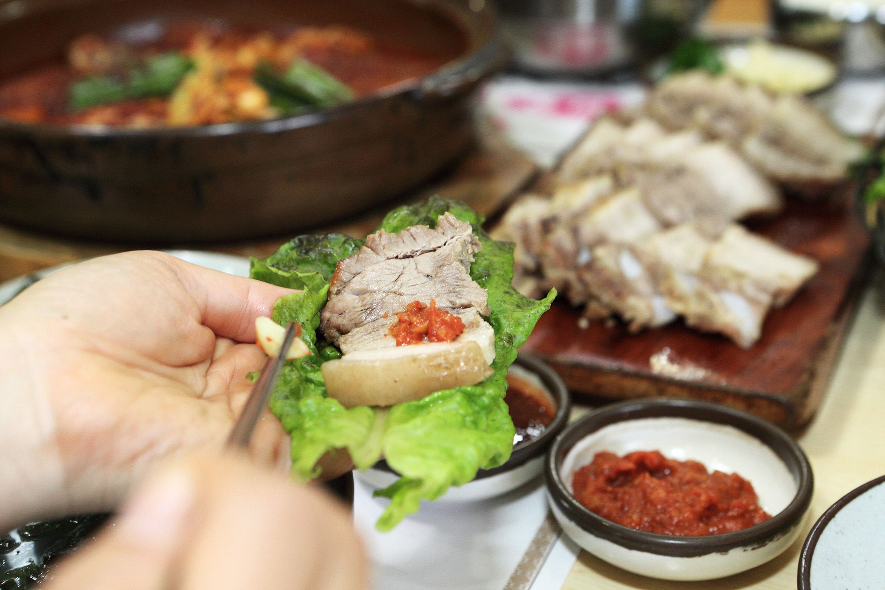 냄새없이 담백한 수육은 그냥 드셔도 좋지만 쌈을 싸서 드시면 더 푸짐한 맛을 느끼실 수 있어요~^^