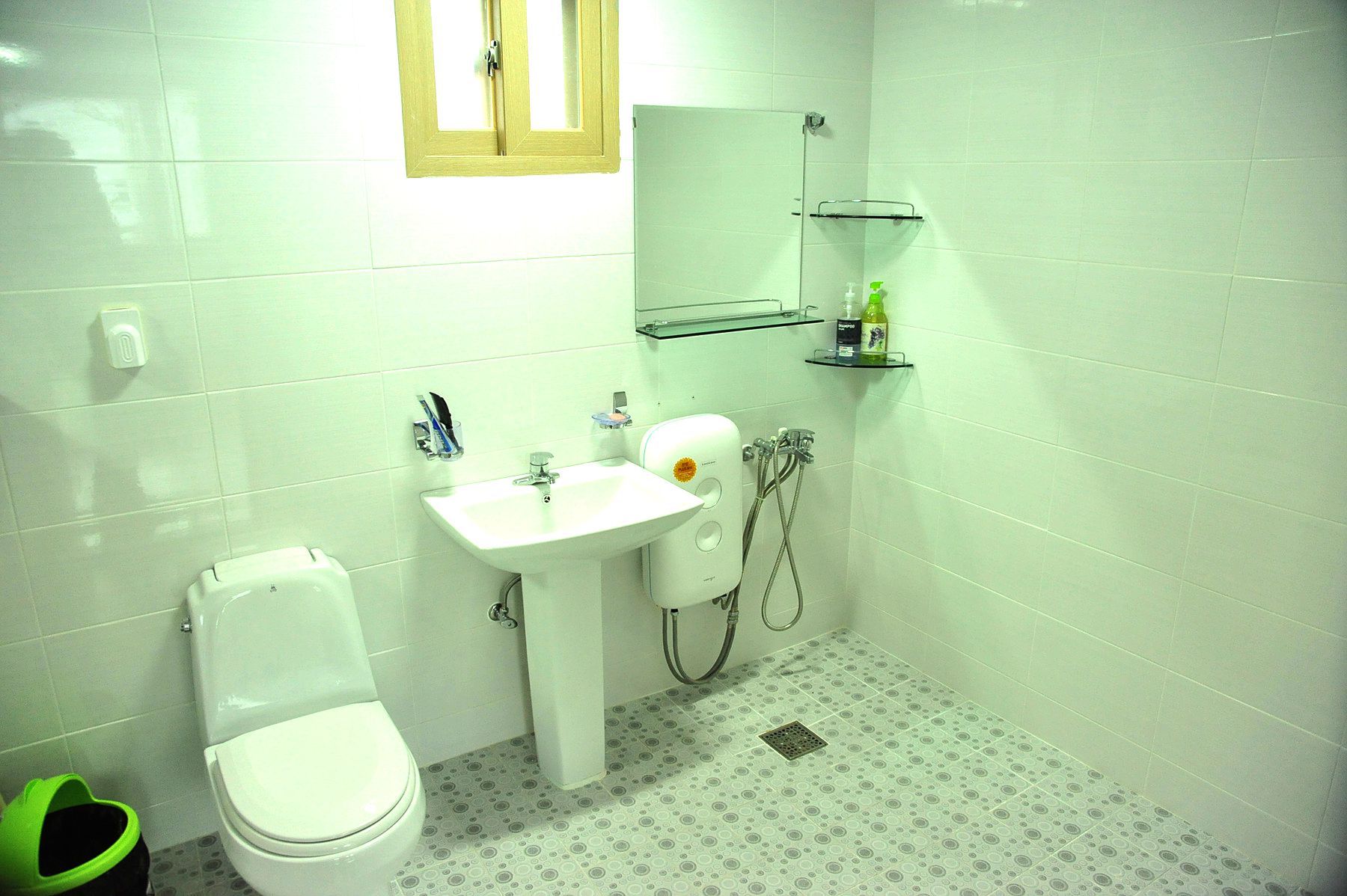 넓고 쾌적한 욕실에는 온수가 잘 나와 개운하게 씻으며 하루의 피로를 풀기에 충분하고