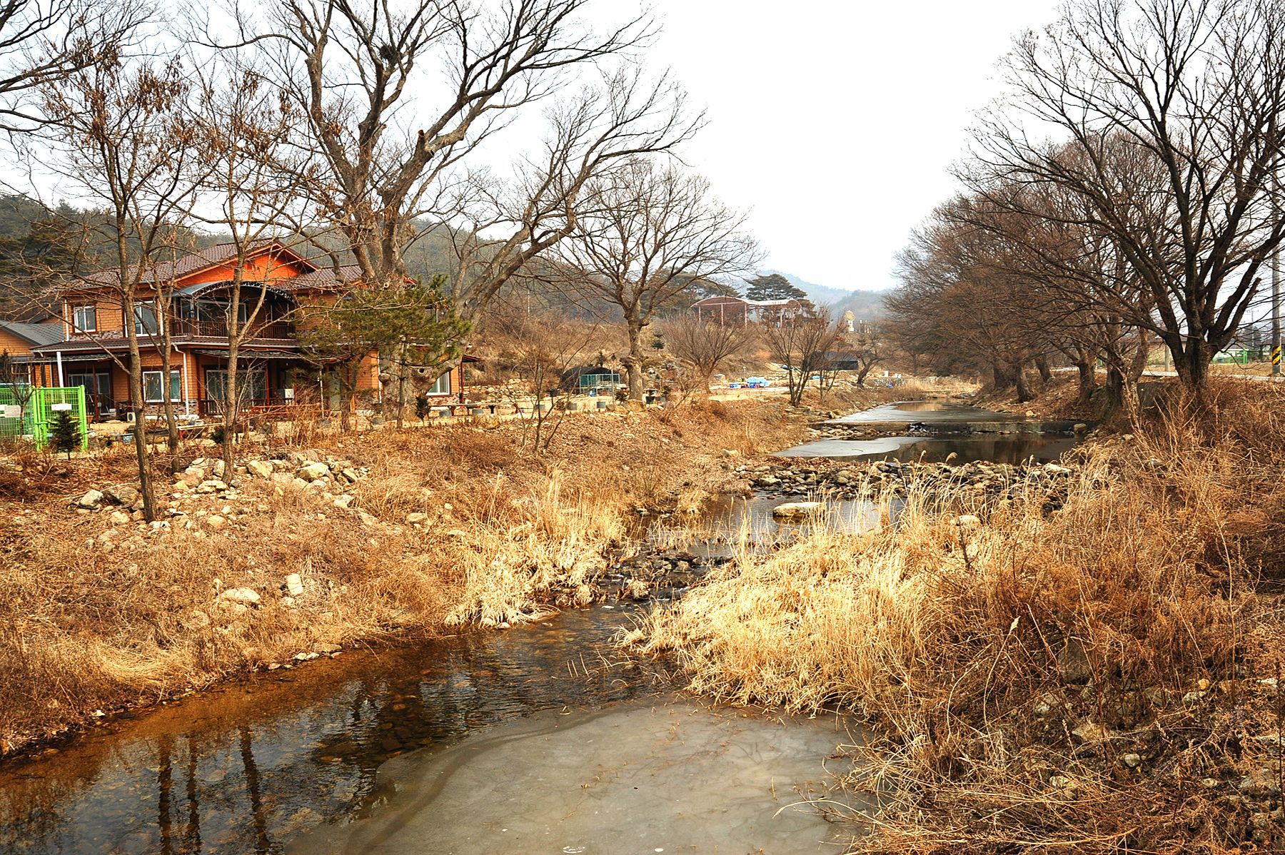 펜션 앞에 흐르는 맑은 물에서는 아이들이 물놀이 하기에 제격입니다.