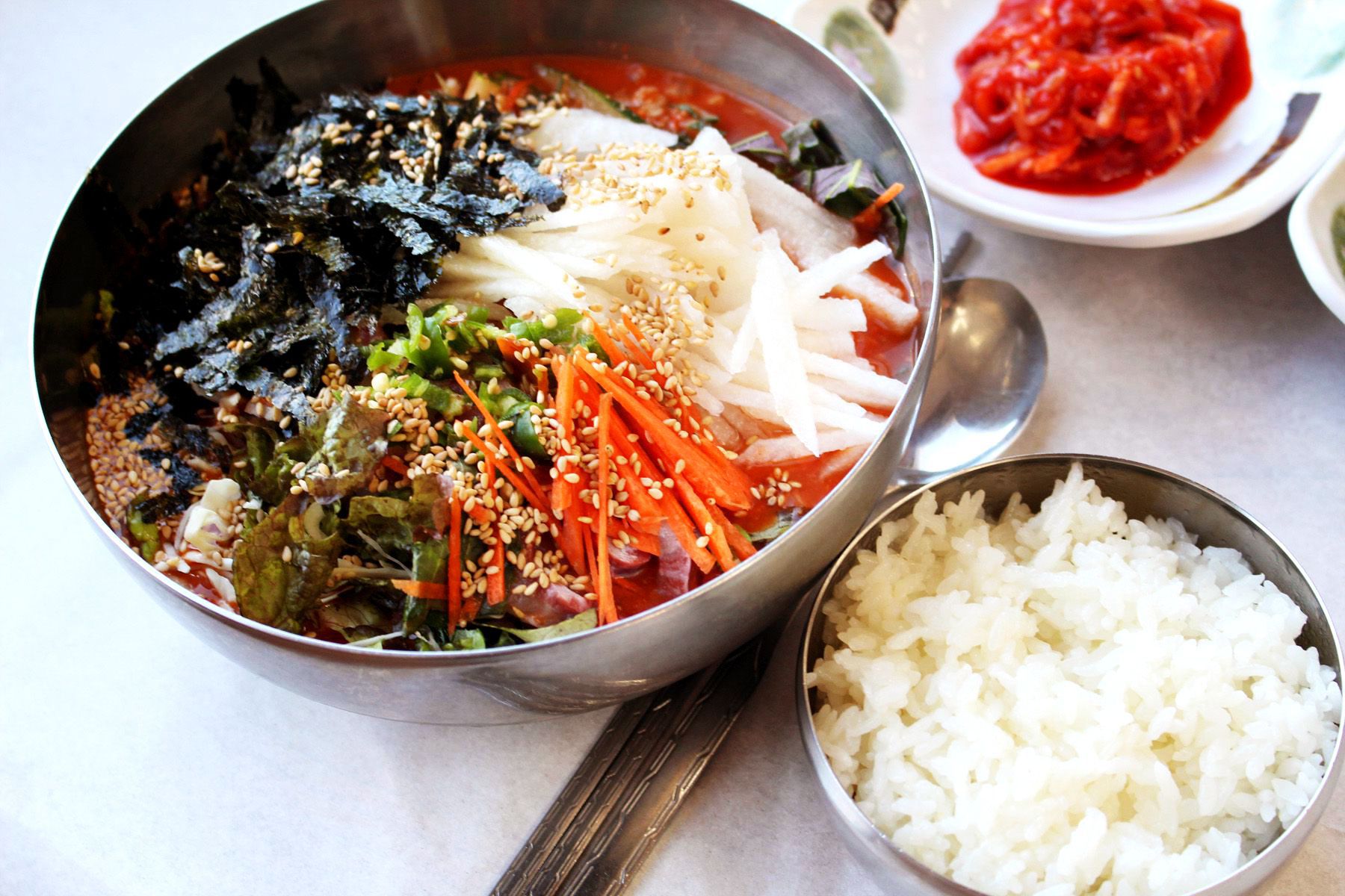 멍게비빔밥은 초장을 넣어 비벼먹고, 성게비빔밥은 간장으로 비벼먹으면 맛있게 드실 수 있습니다.