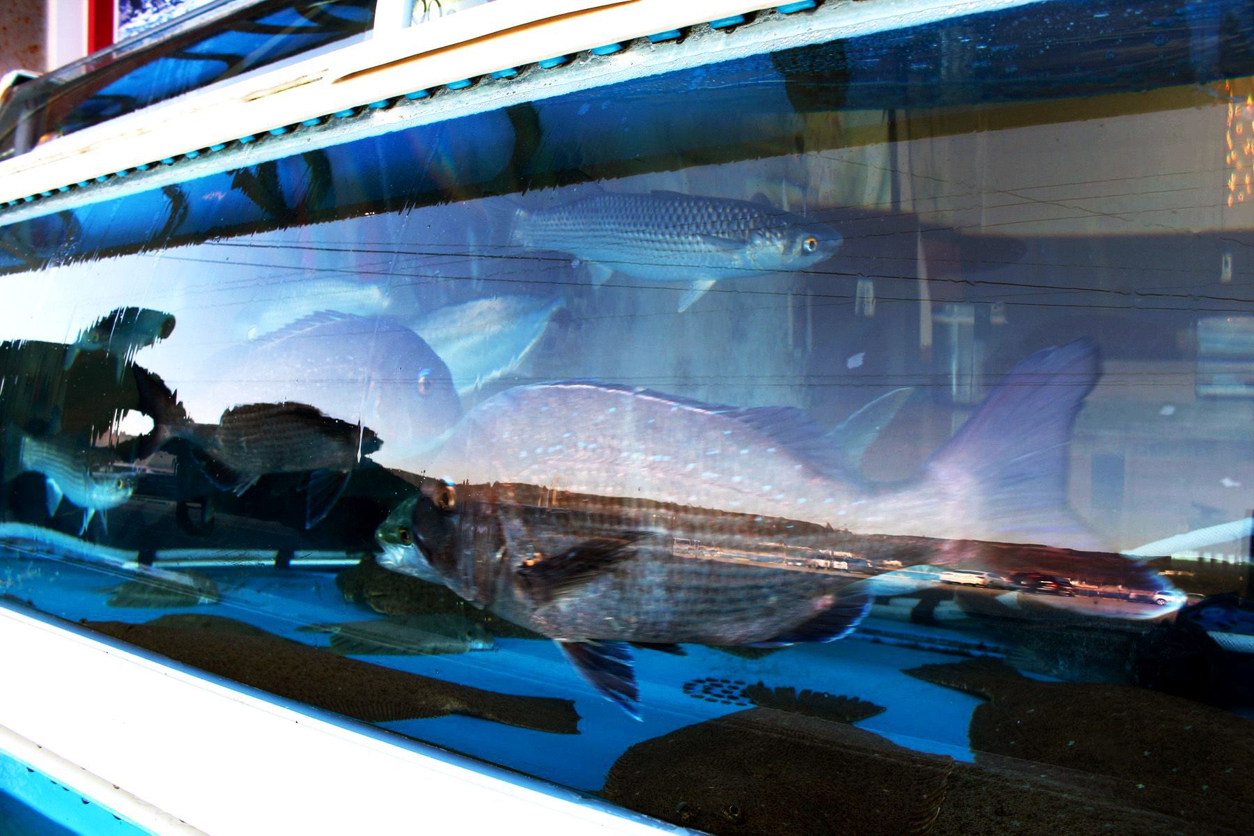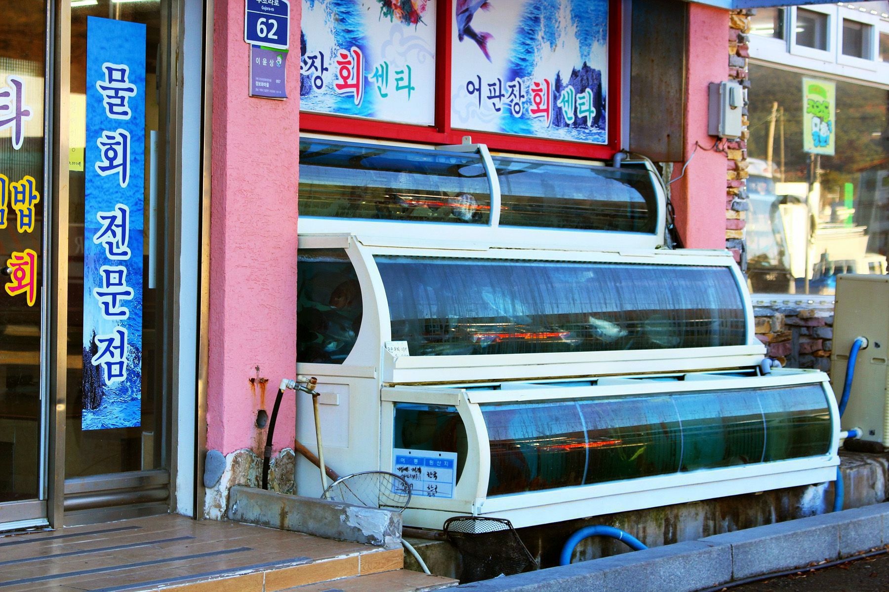 회센타에 있는 수족관에는 항상 신선한 해산물과 생선들이 준비되어있으며