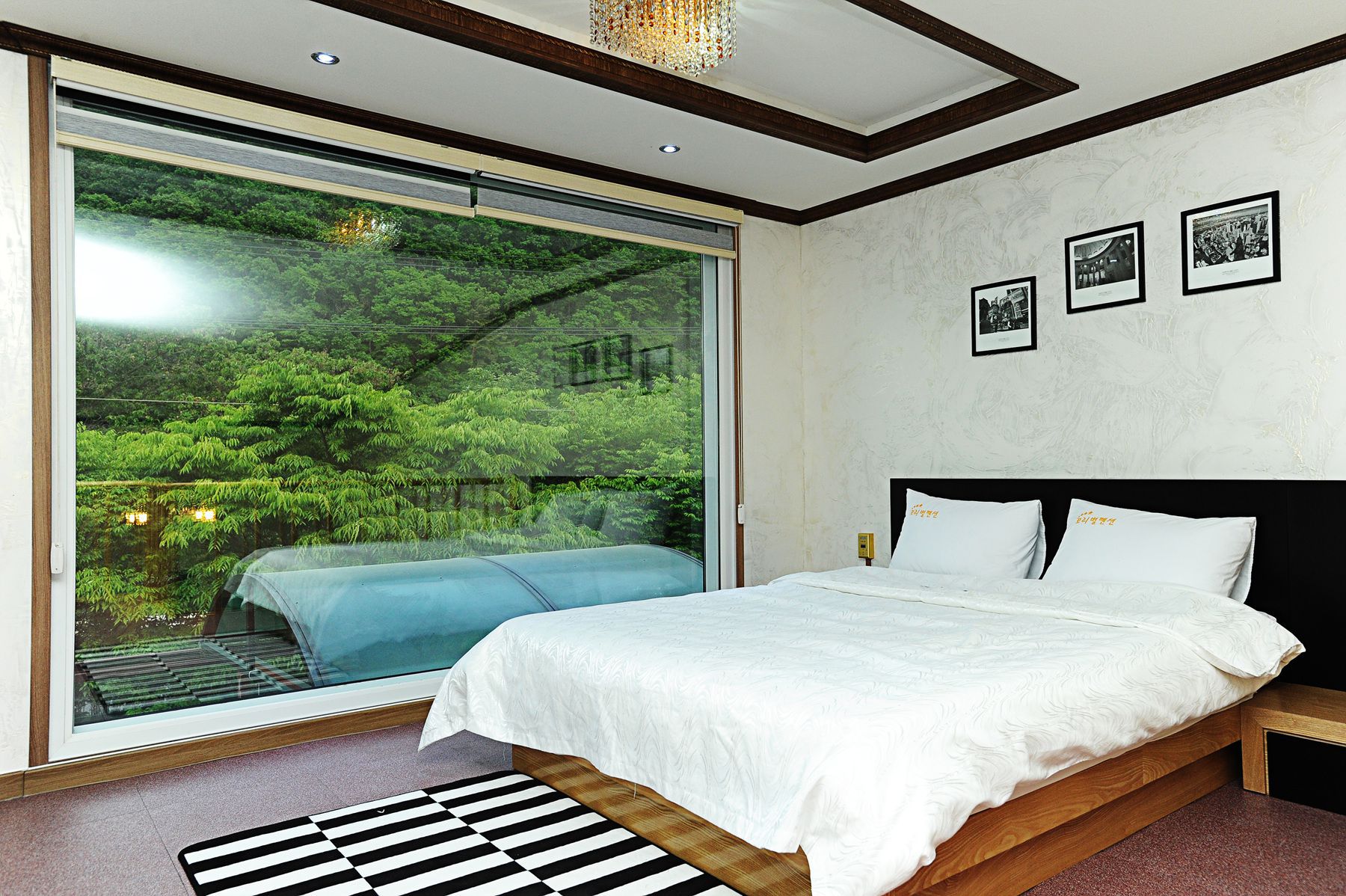 침대옆 아름다운 풍경을 감상할 수 있는 큰 창문이 인상적인 편안한을 추구하는 객실입니다^^