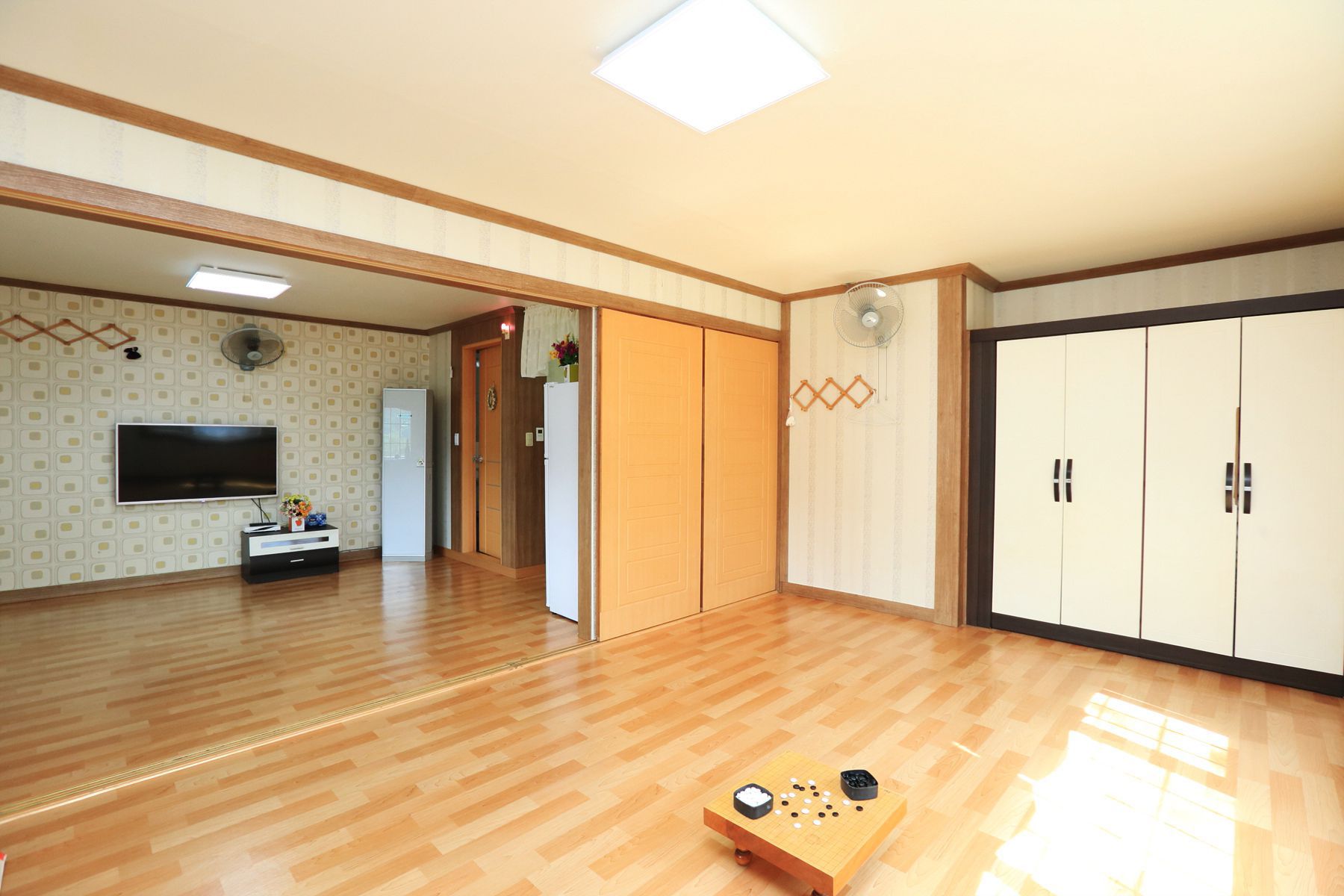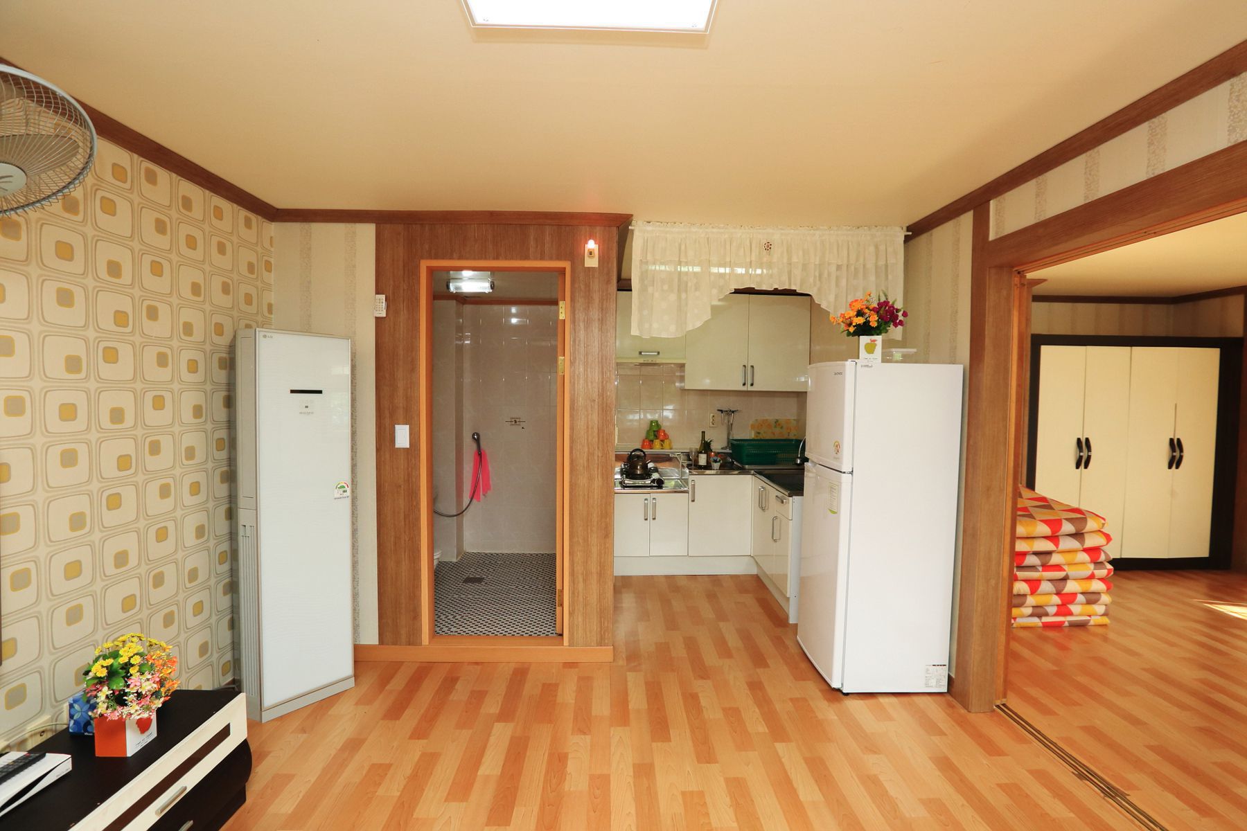 16평 온돌형이며 미닫이문으로 되어있어 낮에는 넓은 원룸형태로