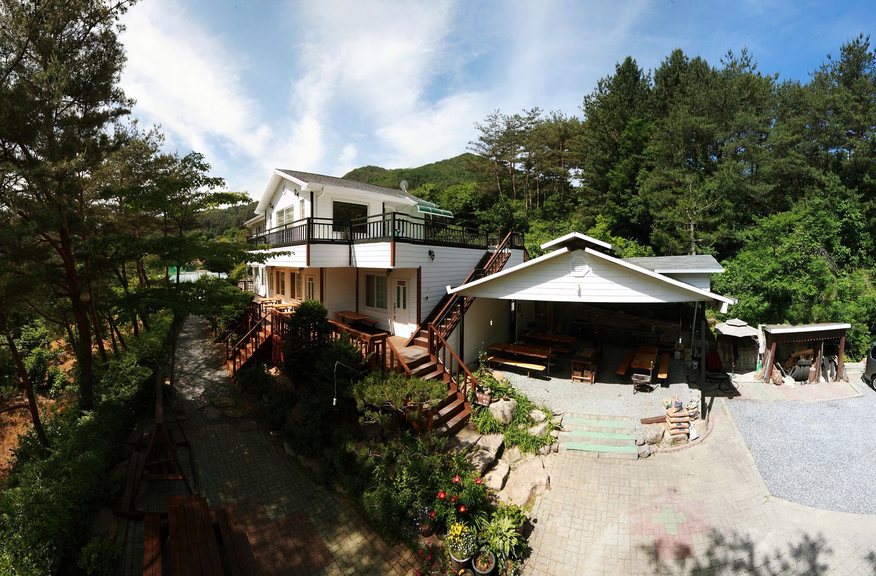 넓은 펜션 앞마당에서 즐기는 족구,배구,배드민턴등 간단한 운동과 여럿이 함께 즐기는 맛있는 바비큐파티 또한 이곳 펜션만의 즐거움이며