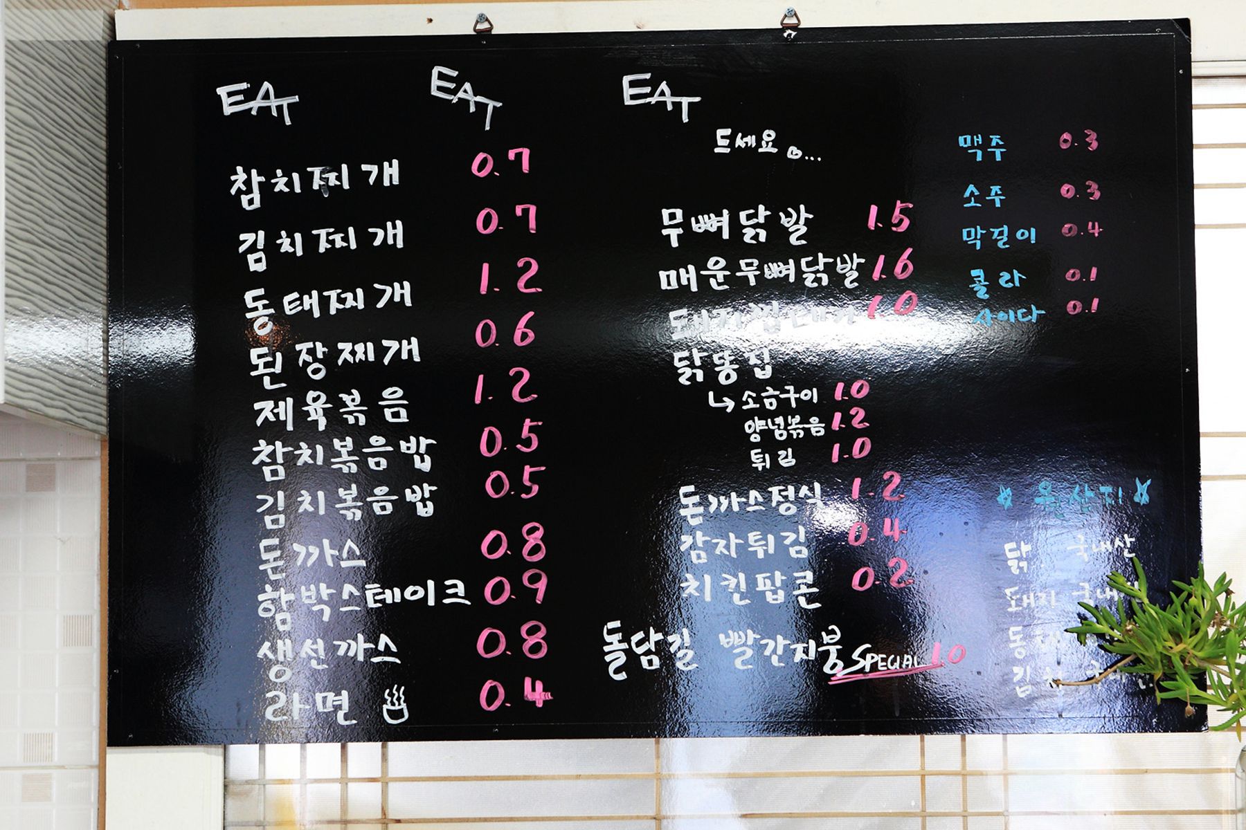 동태찌개, 된장찌개, 돈까스 등이 인기메뉴이고 안주용 무뼈닭발과 닭똥집도 판매하고 있습니다.