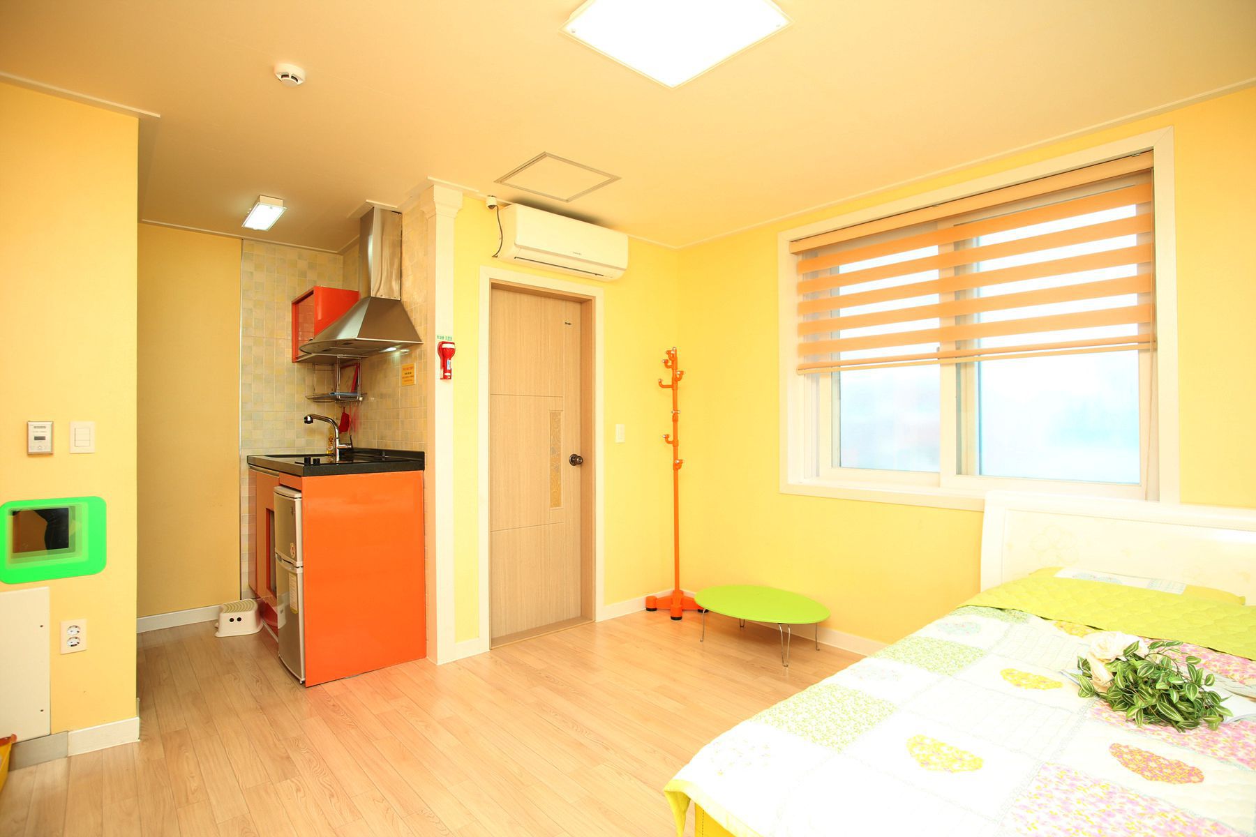 깔끔하고 사랑스런 인테리어의 원룸형 객실로 커플이 이용하시기 좋습니다.