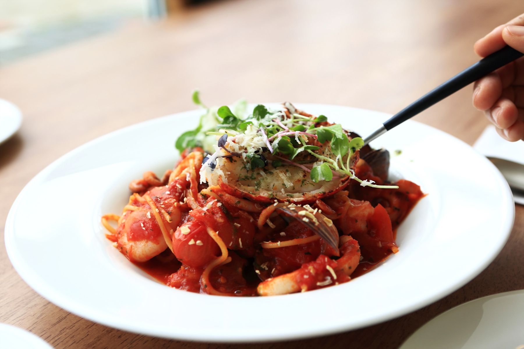 오징어등 해산물이 토마토소스와 환상적인 궁합을 이루는 메뉴입니다.