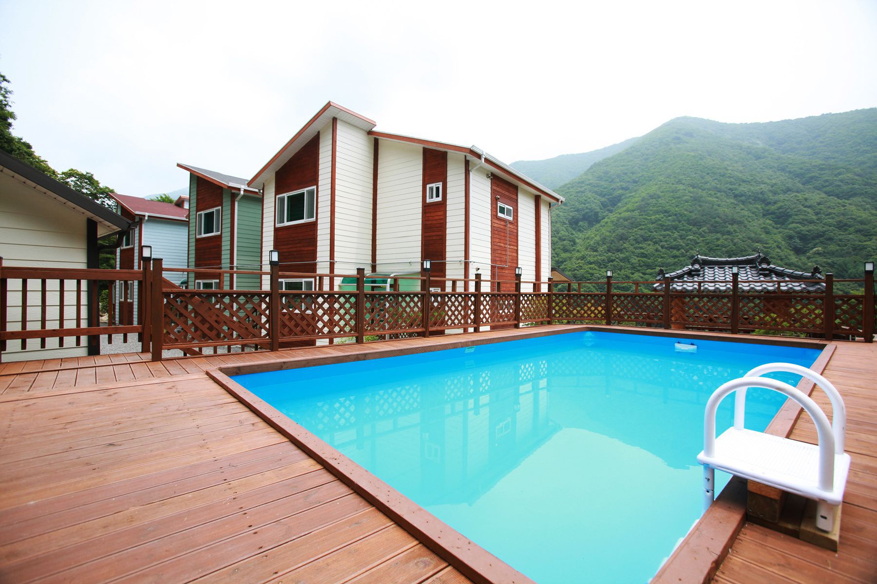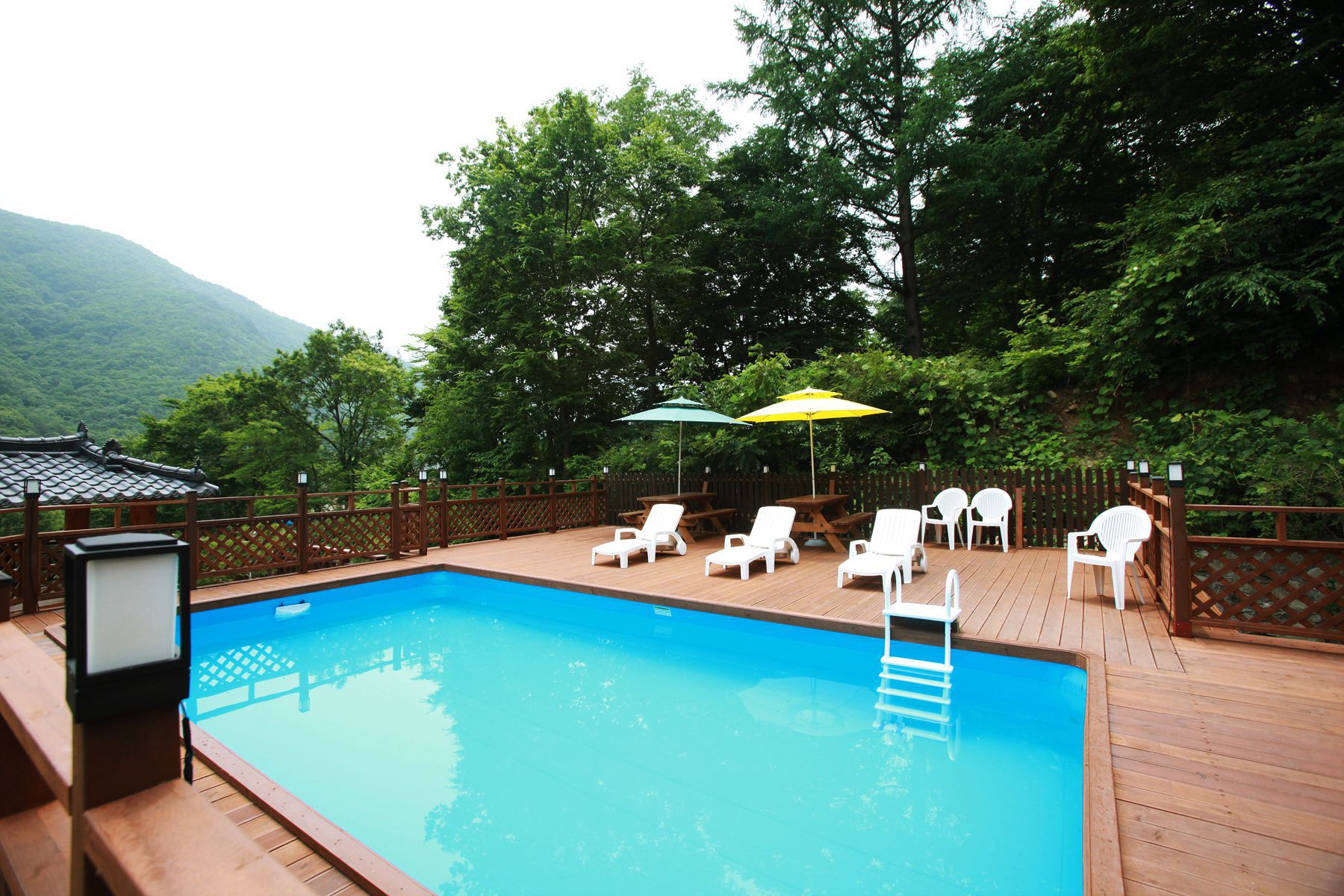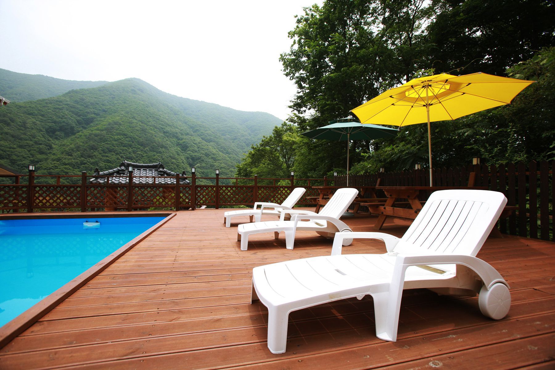 시원한 수영장에서 여유롭게 쉴 수 있는 포그니펜션은 맑은 공기와 숲속 바람을 느끼며