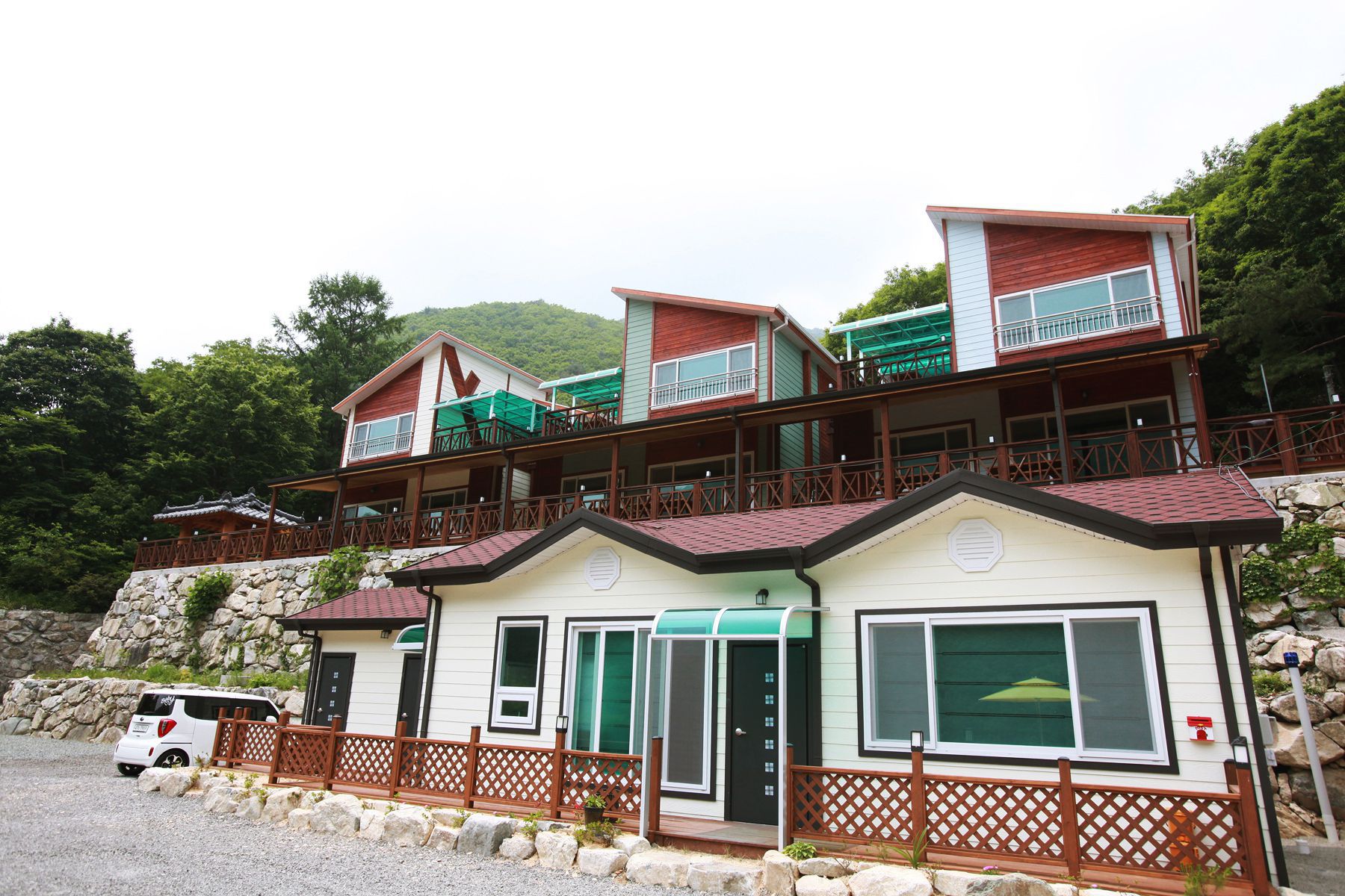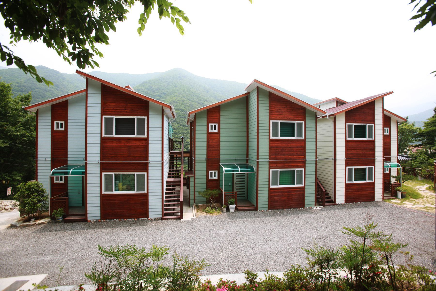 깔끔하게 지어진 펜션건물은 주변 산과 잘 어우러져 마치 알프스에 온 듯한 정경을 자아내고 있어요.